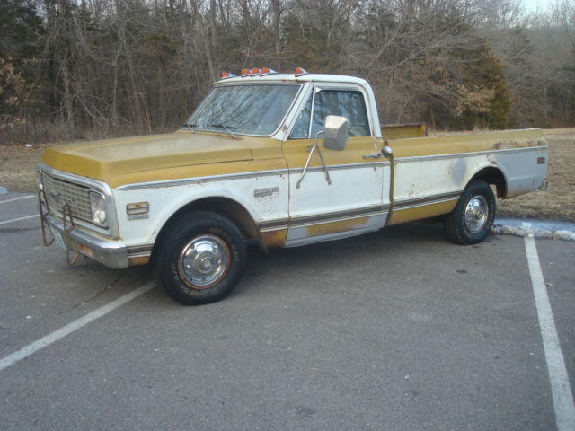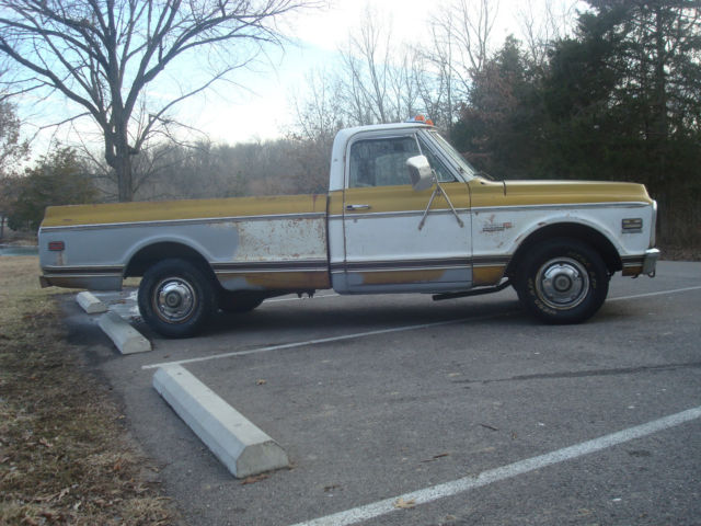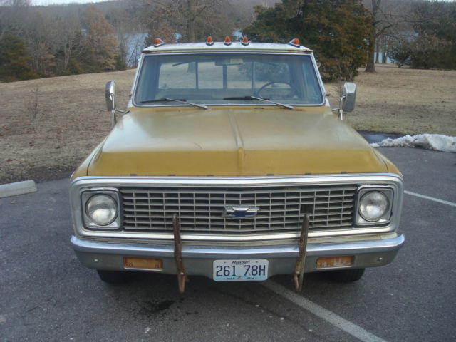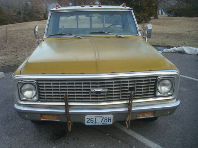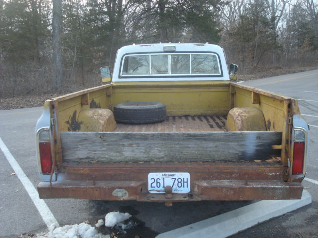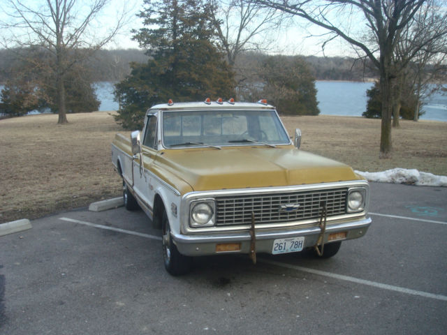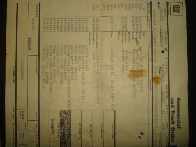 This is a rare truck with it's original Big Block 402 engine, Turbo 400 Transmission, factory power steering, power disc brakes (front), factory air conditioning (missing compressor, but I have the original AC bracket) on the top model for 1971 Cheyenne Super 10. Original paint (patina), interior (worn on driver's side) original engine, transmission wheel covers etc. The only thing not original to the truck is the back bumper (it was originally chrome). The only things missing that I know of is the AC compressor and the tail gate. I've spent a lot of money on this truck, it has a rebuilt engine, rebuilt transmission, new radiator, new gas tank and sending unit, new belts and hoses, new alternator, and a few other things I'm sure I'm forgetting. This truck runs and shifts very well. the brakes work excellent. Tires could use replacing. I've replaced the cab corners inner and outer rockers, and had the bed sides and cab floors repaired. The body is very solid (cab and bed). You would be hard pressed to find a more original, highly optioned, documented truck. I have the original warranty plate, owner's manual, and order receipt stating all the original options for this truck. How cool is it that the original owner was a Drive In? I require a non-refundable $500 deposit within 48 hours of the end of this auction. Payment will be received 7 days after the end of the auction. Shipping will be paid by the buyer. Feel free to ask any questions. Thanks for looking.