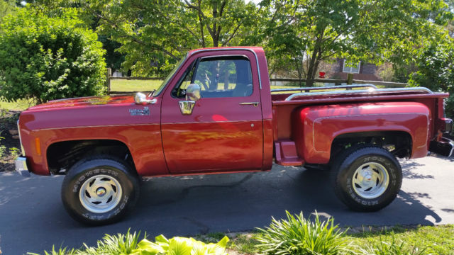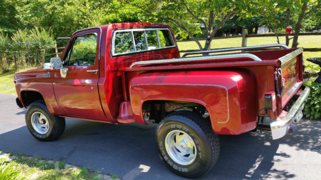 JUST LISTED! 4x4 Beautiful RARE burgundy colored Chevy Custom Deluxe C10 truck with stepside shortbed and V8 350c.i. power. This 4wd truck is a real head turner and always gets lots of attention and compliments when out. It has been in our family for nearly 30 years and has been very dependable. Goes really great in snow with automatic locking 4 wheel drive, Michelin tires and premium alloy wheels. Has been garaged and well cared for. Oil changes every 3,000 miles. Automatic transmission, power steering and power breaks, AM/FM radio stereo, chrome bumpers on front and rear, chrome spotlight, chrome bedrails, fairly new battery and brakes. Dual exhaust looks and sounds tough. Never been wrecked. Painted a few years ago and has been garaged since. Our mechanic has recently looked the truck over and gave it a clean bill of health. Truck shows normal wear and is a daily driver, runs and drives great. Great investment. Value should only increase with regular maintenance and care. This rare truck is priced to sell quickly. NO TRADES PLEASE and NO WIRE TRANSFERS. Just good ol' fashioned face to face transactions please. Cashier's check or cash only. Located near Greensboro NC. If interested, you may contact me at DCLARK02@TRIAD.RR.COM