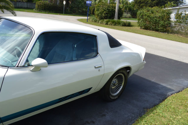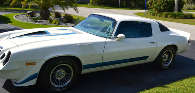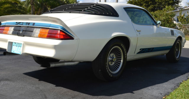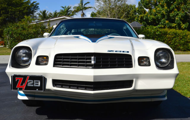 1979 Camaro Z-28 #'s matching 100% stock original Build Sheet, receipts Air Conditioning 1 repaint with correct decal kit Detailed & Stock Engine Bay An all stock 1979 Z-28 with just over 59,500 miles. It has one correct re-paint. All original sheet metal, floors, and trunk pan. Never any rust or damage. Straight body with perfect panel alignment and gaps. New correct Stripe Kit from Phoenix Graphics. Code 11 white exterior with 24b deluxe cloth interior. Engine: RPO Z28: 350CI H.O. V8. Code MX1: Heavy Duty Turbo Hydramatic 3 Speed Transmission. Rear: Code PY 3.42 Posi-traction. 100% all numbers and date codes match throughout with original build sheet. 17 Factory Options: Soft Ray tinted-glass, power windows, color keyed front and rear floor mats, roof drip molding, rear window defogger, four seasons air conditioning, limited slip rear axle, cruise control, tilt steering column, spare tire-stowaway, cast aluminum wheels, auxiliary lighting group, heavy duty battery, dual horns, AM-FM stereo, rear speaker, and dealer installed rear window louvers. Many new parts including; rebuilt carb and trans, new trans lines, new radiator, all new hoses, new heater core, motor heads rebuilt, new cam and bearings, new lifters, new oil and filter pumps, new water pump and thermostat, engine block inspected with all new gaskets and seals, new timing chains, new motor mounts, new belts, rebuilt air conditioning compressor switched to R34, new calipers, brakes, and wheel cylinders, 4 new tires, detailed engine compartment and undercarriage, quartz movement clock, and all fluids have been changed. Everything works including Cold A/C & Cruise Control Nicest late 70's on eBay for the money. Drive, show, invest. Car is for sale locally so listing may end anytime. Terms of sale: $500 Paypal deposit due 3 days after purchase, no exceptions. Full payment within 7 days of purchase, no exceptions unless discussed & agreed prior. Car sold as is, where is with no warranties written or implied just like every other 35+ year old collector car. Photos are for identification and marketing purposes only. It is the buyer's responsibility to have satisfied him/herself with the automobile prior to purchase. No allotments or monetary adjustments will be made prior to sale for imperfections or defects known or unknown. Shipping is the responsibility of the purchaser. All sales are final, no returns. Thanks!