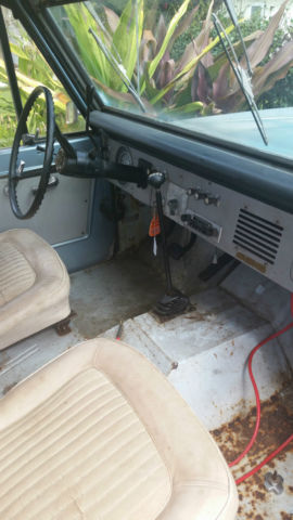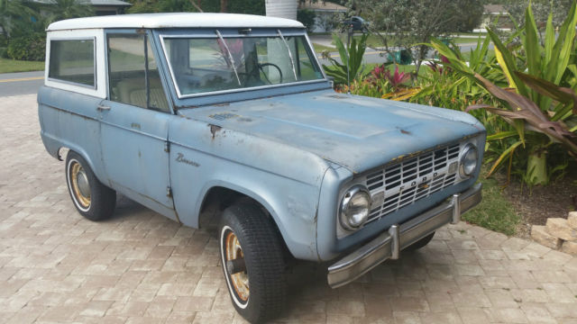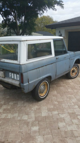 I BOUGHT THIS BRONCO WITH THE FULL INTENT OF RESTORING IT BUT HAVE FOUND ANOTHER THAT IS IN MUCH BETTER CONDITION AND THEREFORE THIS ONE MUST GO. THIS BRONCO WAS BOUGHT DOWN TO FLOR. FROM MASS. AND AS THE STORY GOES, BELONGED TO A FIRE DEPARTMENT IN NEW YORK STATE SINCE NEW. IF YOU LOOK AT THE TAILGATE - THE EMERGENCY LIGHT IS STILL IN PLACE - AS IS SOME OF THE RED AND YELLOW PAINT IT WORE FOR ALMOST 50 YEARS! THIS BRONCO HAS RUST IN THE USUAL PLACES AND NEEDS DOORS, A HOOD, FENDERS, TAILGATE, ETC. BUT IS AN EARLY BUILD 66 AND IS 100% ORIGINAL AND RUNS EXTREMELY WELL.THESE BRONCOS ARE GETTING EXTREMELY HARD TO FIND IN THIS KIND OF CONDITION (UNCUT AND ORIGINAL) AND IS A GREAT PROJECT FOR ANYONE LOOKING FOR AN ORIGINAL 66 (WITH ITS MOSTLY UNDAMAGED EYEBROW GRILL)AND IS WILLING TO SPEND A FEW BUCKS TO GET IT SORTED. THE BED IS EXCELLENT AS IS THE DASH AND THE TOP - WHICH I DOUBT HAS EVER BEEN OFF). 4WD DOES ENGAGE BUT THE BRONCO NEEDS BRAKES TO MAKE IT DRIVEABLE ON THE STREET. PLEASE NOTE THAT THIS BRONCO IS ALSO FOR SALE LOCALLY AND WILL BE SOLD ON A FIRST COME FIRST SERVE BASIS. PAYMENT AND SHIPPING TO BE DISCUSSED BUT A $1000 DEPOSIT WILL BE REQUIRED WITHIN 24 HOURS OF SALE THRU PAYPAL. I WOULD ALSO LIKE TO MENTION THAT THE FRAME AND UNDERCARRIAGE ON THIS TRUCK IS SOLID AND RUST FREE (EXCEPT OF COURSE SURFACE RUST) I WOULD ALSO LIKE TO POINT OUT THAT ALL THE DOOR POSTS ARE SOLID EXCEPT FOR THE DRIVERS SIDE FRONT. On Feb-18-15 at 14:46:20 PST, seller added the following information: COME ON NOW GUYS - LOOK AT WHAT EARLY BRONCOS ARE GOING FOR ON EBAY AND STEP UP TO THE PLATE........ $5000 IS NOT GOING TO BUY THIS BRONCO! INTERESTING TRADES CONSIDERED! LET ME KNOW WHAT YOUVE GOT!