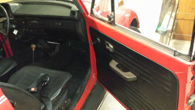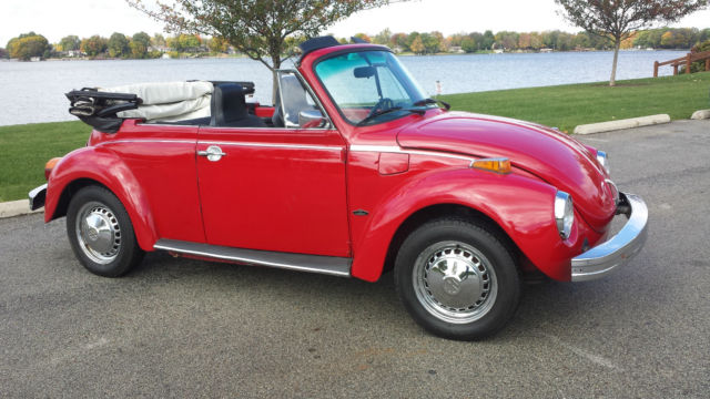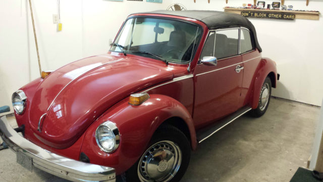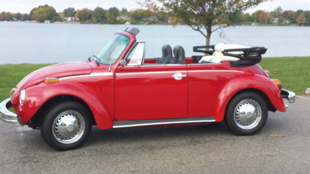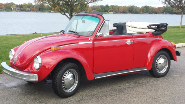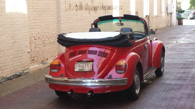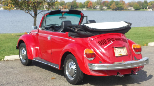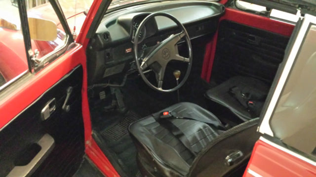 1974 Volkswagen Super Beetle Convertible, Garage Kept, Extra Clean and Rust Free, Starts, Runs, Shifts and Drives Excellent. The Car is showing 80716; which I believe to be accurate; although the title shows exempt. Sometimes this happens on a vintage vehicle at the license branch. Paperwork shows that it had a lot of mechanical work done in 1995 @ 79,636 miles; so it has only been driven 1000 miles over the last 10 years. Prior to 1995 it sat in the garage of an elderly family member of the guy we purchased it from and I think she owned it for many of its years. My mechanic found and fixed a wiring issue that had been draining the battery. It does have a new battery and starter. All of the lights, Wipers, "heat" and even the factory AM/FM Radio Works. (Could use better speakers though); we use a rechargeable blue tooth portable device and sit it on the dash. We drive it occasionally through the winter if the roads are completely dry. I am not an expert; but the floors look factory to me and are in excellent condition; if they were replaced; it was over 10 years ago and look original; please look at the pictures for yourself. The top is in good condition; however the area around the back window could use some trim work or just replace the top to make it perfect. We rarely drive it with the top up; so we had not made the back window area a priority.
