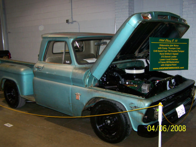 1964 Chevy C 10 pick-up for sale. This truck is a rust free Texas truck with all original paint and now perfect patina. Complete frame off, drive train, and suspension restoration with performance up grades to everything but the body and paint. This is a fun, fast, and loud truck you can drive anywhere and get lots of looks and thumbs up. It runs on E 85 fuel, but can run on pump gas with a carb change or rejetting. E 85 is 105 octane, which is cheaper and cleaner burning then gas. Starting new project and need the room. Motor: *ZZ4 350 Chevy Crate Engine with aluminum heads *Mega Thumper Comp Roller Cam *Valve springs and Roller Rockers *DUI performance distributor *Quick fuel 750 race prepared E 85 Carb *Race pump fuel pump *Aeromotive fuel regulator *Russell ultra lite fuel lines *Stainless steel fuel tank *Fauxsmobile value covers *Hooker headers with spin tech mufflers Transmission and Rear end: *Tremec TKO 600 5 speed trans with synchronized shifter upgrade by Liberty gears *Ram Power grip clutch set *12 bolt rear end with 410 gears *Auburn posi and strange axels *Drag Star tires Everything Else: *Disc breaks in front and drums in the rear *All new break lines and master cylinder *Hurst line lock *New wooden bed *New seat covers and rubber floor mat $500.00 non-refundable deposit required with in 24 hours. Pick up only, sorry can't help with shipping. Payment in full before truck leaves my shop. Please only bid if planning to buy. Thank you, good luck.