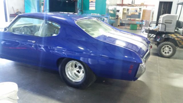 I have a Metallic Blue 1971 Chevrolet Chevelle. It has almost no miles on it and is a beautiful car. I keep it on the lift except for special occasions. This car has underwent an entire frame off restoration. Everything on and in it is brand new and ready for speed. It is street legal, and registered in Colorado but it has all the capabilities of a race-car. It comes with a full roll cage and a 5 point harness. It is also Tubbed With a 496 Mark 4 engine Ford 9in rear end Mickey Thomson tires with center-line wheels And a TH400 stage 2 shift kit with GM 350 Torque Converter 1800-220 RPM Heavy Duty Block: MK IV Bolt Mains new 502 Forged Steel Crank GM Heavy Duty Racing Connecting Rods Forged 9-3/4:1 TRW Pistons Internally Balanced Crane Hydro Roller Cam Bluew printed Roller Timing Chain Deep Pan and GM Racing Oil Pump Heads: Manley Oversized Extreme Duty Valves (Manley's Best valves) Manley Triple Valve Springs Chambers cc'ed and polished Some Porting Other: Edelbrock Aluminum Intake Pro Commp Electronic racing distributor Used Holley 850 double pumper GM Clutch Fan I am asking 25,000 cash. I am willing to consider trading for CNC equipment or tractors