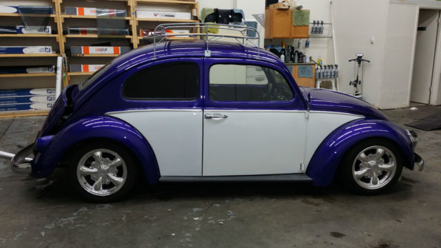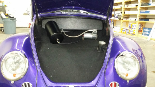 1959 Volkswagen Beetle 2276 cc motor with dual carb, compufire distributor-less ignition, and stinger exhaust roller accelerator pedal. 4 wheel Air shocks with custom independent switches, and gauges under dash pod. refinished rear seat new padding and leather wrapped to match front black leather racing seats. 1 piece roll-up windows in doors. as well as power windows added, new black powder coated stainless (black and machined) running boards and kick plates. vintage style digital 12v stereo w/ auxiliary jack (looks like a digital 6v) custom gauges (need sending units) tires are in like new condition. cali style roof rack air tank and compressor w/ auto switch when tank is full mounted under bonnet overall in very good condition. very minor spots here and there. i would recommend redoing wiring and getting rid of the old wood fuse block, but not necessary just a recommendation. NADA classic car value high retail $20,500 currently insured with haggerty as $20,000 cash value. This is a very fun car to drive, and a head turner for sure. don't miss out on this deal. No Reserve . Shipping is responsibility of the buyer, i will be available for shipping company to pickup. $500 via paypal required within 24 hours of auction end. remaining balance due with 7 business days with certified funds . vehicle must be picked up with 30 days(allowing enough time to schedule with shipper) of auction end. After 30 days, in door storage will be provided at $25 per day. All sales are final and as-is no warranty. Good Luck and Happy Bidding!