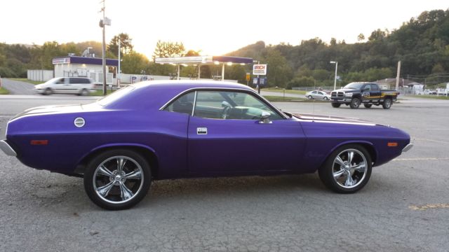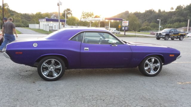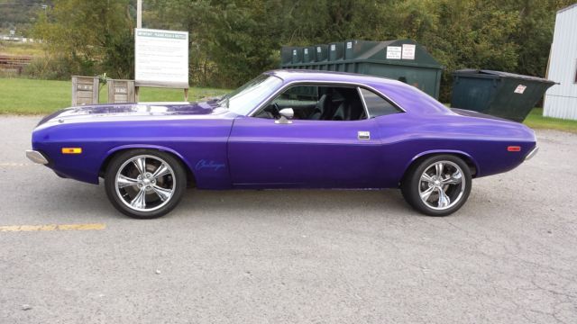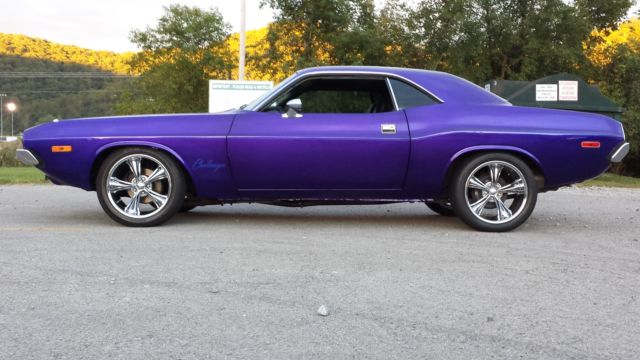 I am selling my 1974 Dodge Challenger custom, It had a 318 motor that is putting out 400+ hp. it has a 727 Tranny with a Mopar 8 3/4 rear end, Not sure of gearing but it goes down the street with no problem, This car starts right up and is a dream to drive, and everywhere I take it everybody loves the way it looks and sounds, the glass has all been replaced and the interior has all been redone, the front and rear bumpers have been re chromed. the exhaust flows through duel SS pipes into Flow Master mufflers. new windshield and back window, all new rubber weather strippingThe paint is House Of Kolors Blurple, there are a few blemishes but the car shows well, the only show I took it to last year it won a top 20 trophy. newer BOSS rims I bought the car from the second owner, He is the one that built the car, it came from California, this is a rust free car. I have only had it a short time, but I need to down size. This car is kept in a heated and dehumidified garage. Please no tire kickers, dont ask for my reserve, You know what they cost and my reserve is well worth what I am asking. NO TRADES. I am asking for a fair price thats all. I suggest that anyone who would like to bid on this car please come and look at it, I have described it as best I know and the condition it is in. You will see that It is as nice as I have described it. The minor blemishes on the paint are on the sides between the rear window and the side window, some minor rock chips, and a light spot on the hood about the size of a dime. as I said this car is not perfect but looks daggone good from 10 feet away. I also just found that the shifter handle has a crack in it, I am going to order a replacement and should be here before the end of the sale.