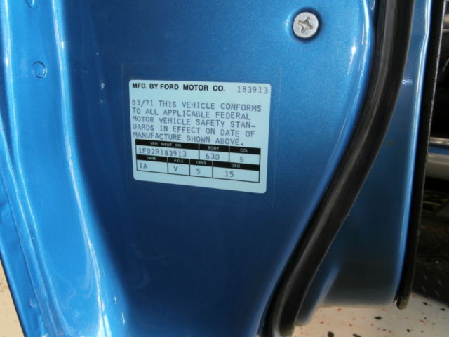 | VIN (Vehicle Identification Number): | 1F02R183913 | Year: | 1971 |