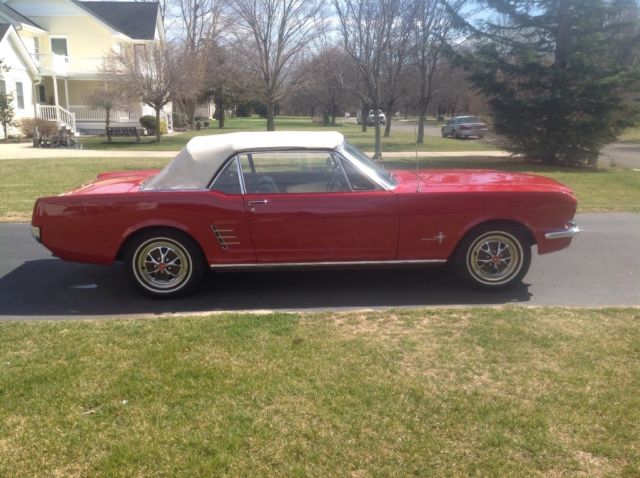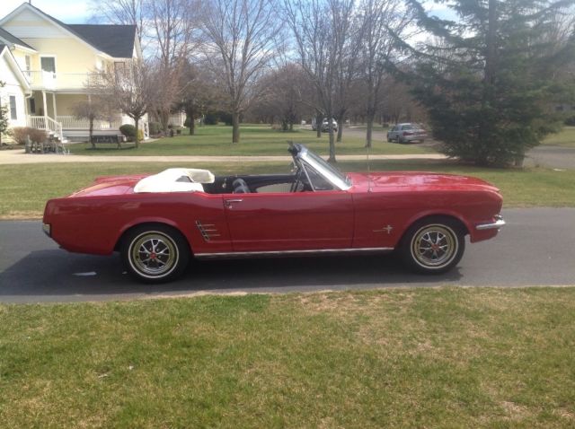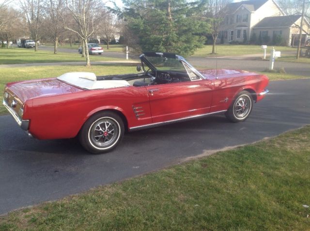 You are bidding on a 1966 Mustang Convertible. I just finished the restoration of this car. Starting from the ground up. Not a nut and bolt restoration, but well done. Now the interior. New pony upholstery on all the seats, new pony door panels, new window and door cranks, all glass is in good shape with some wear after 50 years, new mustang seat belts, new TMI center console, new leather shifter, new satin turn indicator, new rug, new retro radio, new gauge panel, new glovebox door, new sun visors, all gauges and lights work, fan and heater work. The trunk has an original jack and comes with everything in the trunk you see. Now the exterior. New paint, all new parking and reverse lights, new bumpers, new bumper guards, new side decoration, new rocker trim molding, new antenna, new Pony Grill. New tires, new hubs, new brake lines, new floors, rockers, frame rails, tork boxes. The undercarriage is solid. Automatic Convertible Top. The top is in good working condition with one nickel size patch. Now the engine. 93,800 miles, new MSD Blaster Coil, fresh tune up, new Autolite Regulator, oil and filter. Power steering for easy handling. The trans was gone thru with new trans pan and gasket. This car runs and drives great. Please go to youtube to see more of the car, just type in Ed Musick 1966 Mustang walk around, Ed Musick 1966 Mustang undercarriage, Ed Musick 1966 Mustang interior, Ed Musick 1966 start up. Please view all pictures and videos carefully as I want the highest bidder to be completely satisfied as I like my 100% feedback rating. Please contact me with any questions. I will not ship this vehicle, but will assist in storing the vehicle up to two weeks while arrangements are made for pick up. A non refundable $500 deposit will be required within 24hrs of winning bidder. Seller has the right to end bidding at any time. Thank you for looking and Happy Bidding.