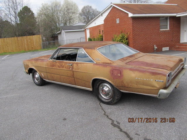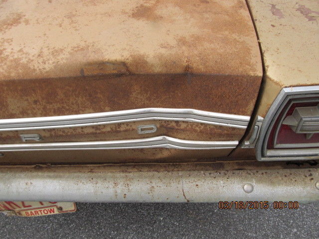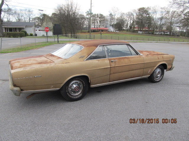 1966 FORD GALAXIE 500 A REAL BARN FIND FOR 34 YRS 1 OWNER WE JUST PULLED THIS CAR OUT A FEW DAYS AGO IT HAS BEEN PARKED SINCE 1983 MR SHAW PURCHASED THIS CAR NEW IN 1966 AT FORSYTH FORD HERE IN GA IT IS A 390 AUTO THIS CAR HAS 35,000 ORIGINAL MILES THIS IS A GOOD SOLID CAR ALL OF THE FLOOR PANS ARE GOOD AND SO IS THE TRUNK PAN ITS ALL SOLID THERE IS A LITTLE RUST AROUND THE REAR PANEL BEHIND THE REAR BUMPER THE OUT SIDE BODY IS PRETTY GOOD AS WELL THERE ARE SOME PLACES THAT WILL NEED A LITTLE BODY WORK IT EVEN STILL HAS THE 8 TRACK TAPE PLAYER IN IT PLEASE LOOK AT THE PICS THIS IS A GREAT CAR TO RESTORE THE CAR WILL BE SOLD WITH A GA BILL OF SALE AND A T22 FORM THIS WILL ALLOW YOU TO GET A TITLE IN ANOTHER STATE THAT REQUIRES A TITLE ON THE OLDER VEHICLES GA DOES NOT REQUIRE A TITLE ON 1985 AND OLDER VEHICLES ANY QUESTIONS CALL 404 925 6697