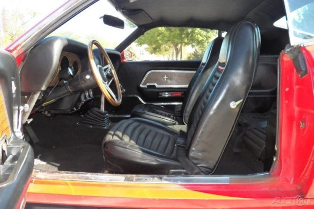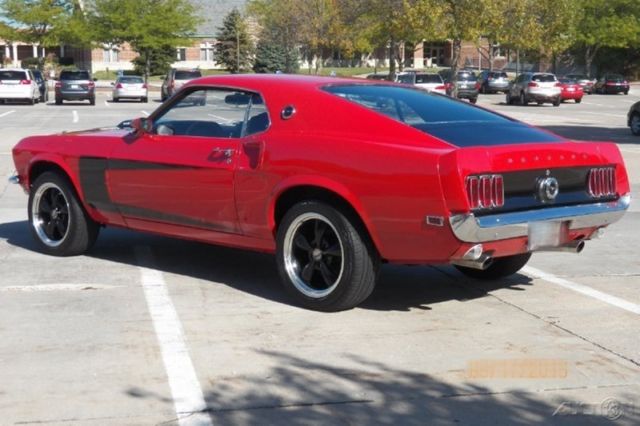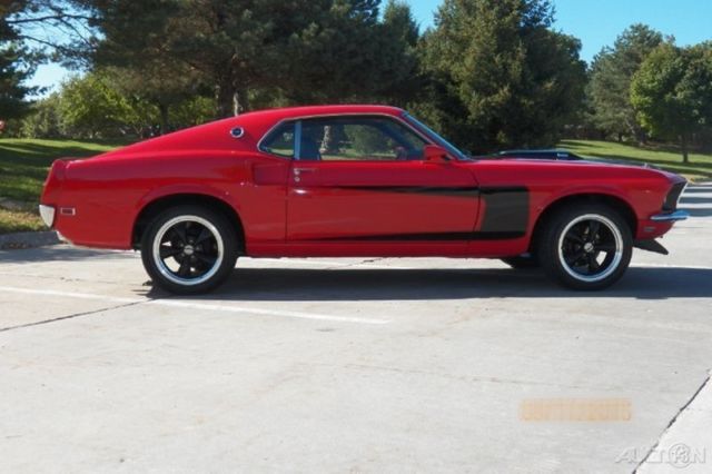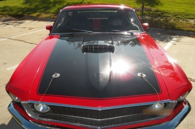 This 1969 Ford Mustang Mach 1 is not only stunning but it is also performance oriented. The custom show stopping black and red paint is complimented by luscious black and red interior. It has a new 351 V-8 engine with less then 10k miles a new automatic C4 transmission upgraded with overdrive. The center dash gauge is a QuickCar gauge for engine oil and temp. The main dash gauge now is used for transmutation status. This Mach 1 Mustang is a true classic beauty, and it fully loaded with almost entirely new parts and upgrades. Some of the incredible advantages include a electric magnetic pick-up distributor, to go with the MSD 6AL ignition Box. Sound system is a hidden amp that use's bluetooth for music so any phone becomes your control. A Borgeson Power Steering Pump Upgrade, three row aluminum radiator with electric fan. Completely new brake lines and system, complete wiring with alarm system (doors and hood), and halogen headlights. All new shocks front and rear with upgraded 11inch front coils for better handling on turns. Hooker headers wrapped with fiberglass heat tape and magnaflow muffler for sexy sound. Welded chrome exhaust tips, new water pump, and a 9 inch differential (that was an upgrade in 69). The interior firewall to trunk is dynomated and it also features a protective rubberized undercoating. Wood grain steering wheel, and new tires that with less then 100 miles on them. This car has been extremely well-maintained and cared-for, as it has never been smoked in and has always been garage kept.