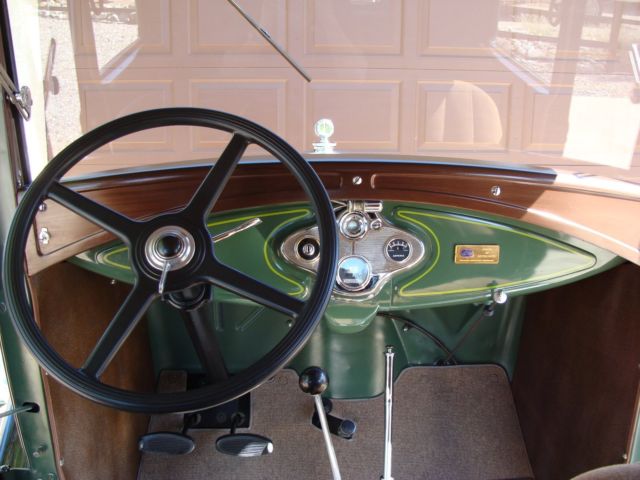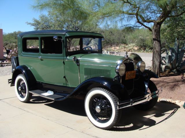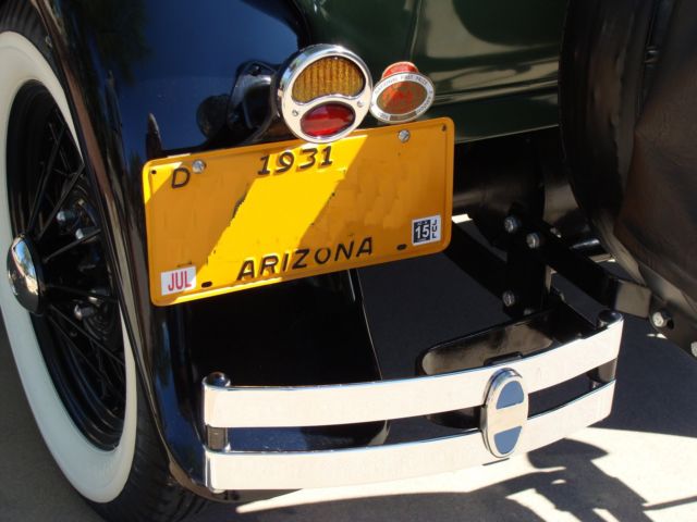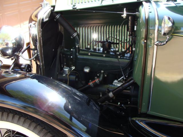 I have a 1931 Model A Ford Tudor Deluxe for sale. Color is Elkpoint Green and Kewanee Green. One of 22,000 produced. It is a Blue Ribbon Award high Fine Point Judged car at the Marc/ Mafca World Meet in Dallas 10 years ago and driven only 6300 miles since the restoration. Other awards include AACA Senior and VMCCA Golden Award of Excellence. The ground up restoration includes Firestone tires( less than 2000miles) over powder coated wheels on new Bratton cast iron drums. New Brassworks correct radiator(5yrs). The interior is correct Mohair with carpet from Lebaron Bonney. Bob Drake steering wheel with Snyder turn signals wired into existing cowl/tail lights. Engine is flawless and runs the same way. Engine & frame numbers match. A stunning trunk( black/tan) built by Jack Nievar sets upon a LeBaron Bonney rack. Paint is perfect except for a few chips that have been touched up professionally. In addition, the buyer will receive all my Model A parts. This is an extensive list including a show quality complete tool kit in a oak case, generator, water pump, side bowl carburetor,extra rebuilt transmission, rebuildable '29 engine with cam, pistons and crank. An extra set of 3x plugs and ignition parts including a rebuilt distributor and head, coil, etc. Also included are many Model a tools specific for these cars such as a spring spreader, brake rivet tool, drum calipers 30-31 hub puller and more. PLUS all my shop manuals and reference books. These are too many to list. Truly, this is one of the best deals on Ebay Motors, and certainly the best deal for a Model A. Feel free to ask questions. The car is for sale locally and I reserve the right to withdraw the ad at any time. Payment in full must be in 7 days and buyer must pick up the car with in 30 days or less. Thanks, Ron