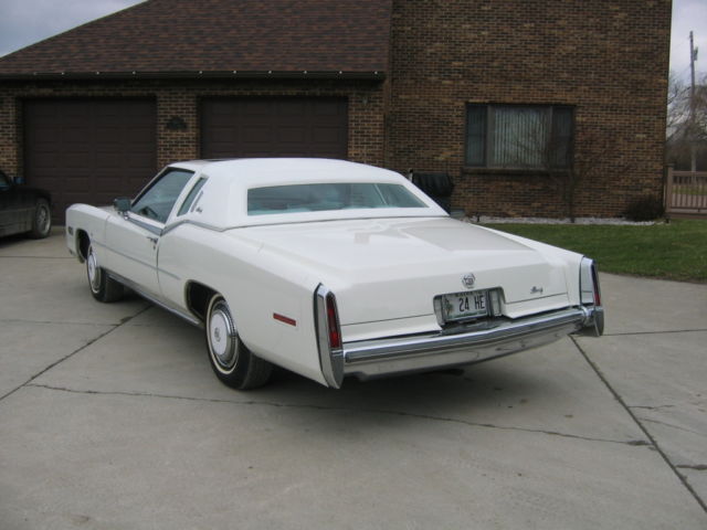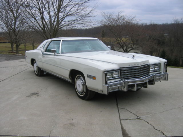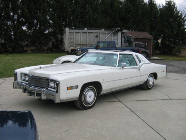 1978 Eldorado Barritz, triple white, 24,500 original miles, southern car, very clean and tight. This car was purchased in Chicago, and went directly to a retirement community in Florida. I repainted the car, because the Florida salt and sun, caused the usual rust under the roof chrome stripes. All the tires are like new, the car has the c/b radio option and the level ride works, as it should. As all cars of this age, it will have some flaws. I request that you or someone you trust come and inspect the car. All inspections are welcome. I have a large garage for a complete inspection. You can not even hear the motor run in this car. The motor is the 425 unit, which is way better than the 472 they used in the previous years. For the price of a used car, you could drive a classic everyday. I have a collection of clean Lincolns and Cadillac's, and I plan to sell around 5 of them. NADA Classic car guide shows average value at $7000, with high value at $11,000. The low miles put this car much closer to the high value. I do not have enough time to drive them all. I also own a business, so if I do not answerer please leave call back number $9450.00 OBO