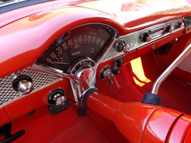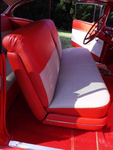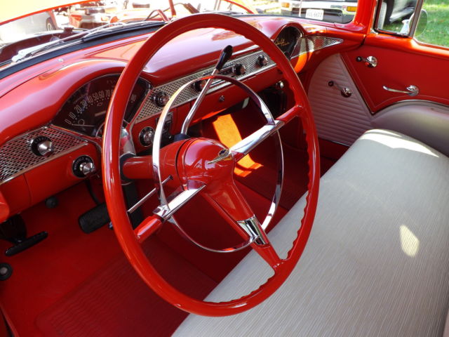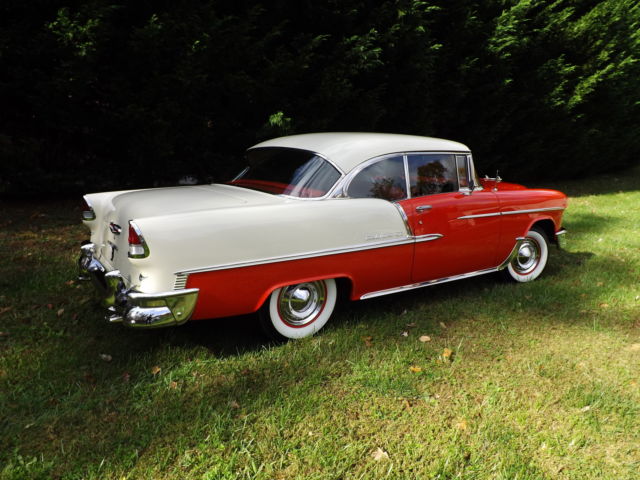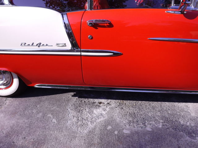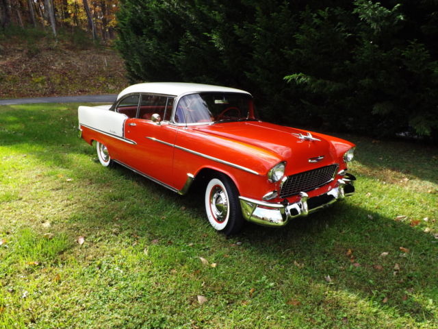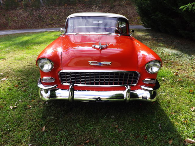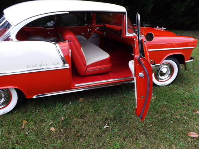 MAY BE THE NICEST 1955 CHEVY BEL AIRE IN THE COUNTRY GYPSY RED W/ SHORELINE BEIGE PAINSTAKING NUT AND BOLT RESTORATION DONE OVER 5 YEARS AACA NATIONAL AWARD WINNER IN NEW CONDITION ATTENTION TO DETAIL AND AUTHENTICITY IS UNBELIEVABLE RATED # 1 IN CONDITION FLAWLESS ENGINE 265CID V8 180HP REBUILT TO FACTORY SPECS ALL HOSES AND CLAMPS REPLACED WITH OEM TYPE PARTS TRANSMISSION ORIGINAL POWERGLIDE REBUILT TO NEW SPECS CHASSIS COMPLETE RESTORATION W/ FACTORY SPECS EXTERIOR THE BUILDER WAS AN ACCLAIMED PAINTER BY TRADE AND THE PAINTJOB IS FLAWLESS OPTIONS POWER BRAKES POWER STEERING POWERGLIDE TRANSMISSION FENDER SKIRTS DAY/NIGHT MIRROR BUMPER GUARDS FACTORY CHROME TIP EXHAUST FULL HUB CAPS INTERIOR UPHOLSTERY DOOR PANELS AND CARPET ARE ALL ORIGINAL TYPE FABRICS ALL GLASS IS DATE CODED INTERIOR IS FLAWLESS SUMMARY CERTIFIED APPRAISAL UPON REQUEST RATED AT $125000.00 THIS IS AN INCREDIBLE RESTORATION PROJECT BY TALENTED FATHER AND SON BUILDERS NO ATTENTION TO DETAIL HAS BEEN OVERLOOKED AND THE RESTORATION IS AMAZING IF YOU WANT ''THE BEST'' THIS IS IT COMES WITH ORIGINAL VIRGINIA TITLE MANY MORE PICTURES AND INFORMATION AVAILABLE UPON REQUEST LOCATED THE MOUNTAINS OF VIRGINIA YOU WON'T BE DISAPPOINTED questions pmark@live.com