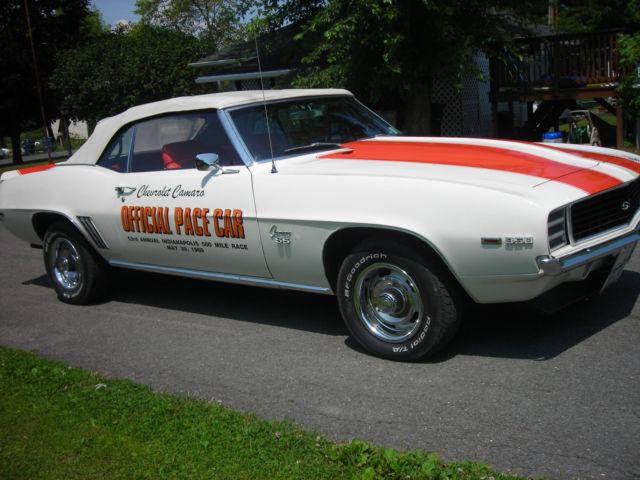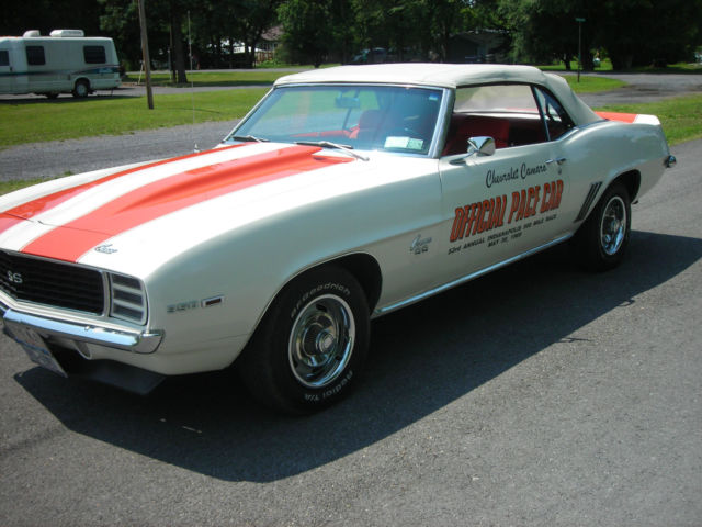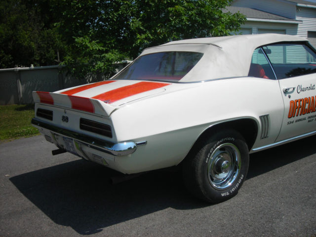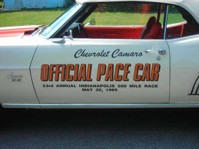 RARE 1969 AUTHENTIC CAMARO PACE CAR!! PRESENTED HERE IS AN ORIGINAL RS / SS Z-11 PACE CAR CONVERTIBLE. THIS CAR IS ONE OF THE RARE FESTIBLE CAR #32 OF 42 COMPLEMENTED ATTENDENEE AT THE 1969 INDY 500... ALL OF WHICH WERE 350/AUTOMATIC TRANSMISSIONS. IN THE JULY/AUGUST ISSUE OF CAMARO CORRAL (PUBLISHED BY THE USCC) THE VIN NUMBER OF THIS CAR WAS PUBLISHED IN THE ARTICAL... FESTIVAL CARS WERE USED AT THE INDY TO PARADE THE QUEENS AND OTHER'S AROUND THE TRACK. THESE FESTIVAL CARS WERE MANDATED TO HAVE AUTOMATIC TRANSMISSION, NOBODY WANTED QUEEN OF HER COURT TO BE EJECTED OFF THE CAR WITH SLIP CLUTCH. THIS ORIGINAL PACE CAR HAS BEEN RESTORED TO LIKE NEW CONDITION BY THE PREVIOUS OWNER! I HAVE HAD CAR FOR OVER 7 YRS SO MOST OF THE RESTORATION IS DOWN AROUND 8-9 YRS AGO.. THE CAR OVER ALL SHOWS VERY NICE... I WOULD RATE THE CAR 8.5 -9 OUT 10... THE INTERIOR WAS REPLACED WITH ALL ORIGINAL GM PARTS AND LOOKS JUST LIKE NEW! ALL GAUGES WORK AS THEY SHOULD. THE CONVERTIBLE TOP IS IN GOOD CONDITION AND GOES UP AND DOWN WITH LITTLE HELP! A COMPLETE FRAME ,FIRE WALL AND ENGINE COMPARTMENT RESTORATION WAS DOWN AND HIGHLIGHTS THE 1969 CAMARO 350 ENGINE, WHICH ALSO WAS REBUILT TOO GM SPECIFICATION. ALL ENG COMPONENTS ARE THE CORRECT CASTING / STAMPING'S MAKING UNDER THE HOOD FACTORY FRESH. THE AUTOMATIC TRANSMISSION WAS REBUILT ALSO. THIS WAS NOT A CONCOURSE RESTORATION,BUT A HIGH QUALITY RESTORATION OF A RARE & VALUABLE CAMARO PACE CAR! THE CAR IS VERY NICE AND CAN BE DRIVEN ANYWHERE! THERE IS SOME BUBBLES IN BOTH REAR QUARTERS AND FEW PAINT CHIPS-BUT OVERALL THE CARS IN GREAT SHAPE!! DONT SETTLE FOR A RE-CREATION-CLONE OR TRIBUTE CAR WHEN YOU CAN OWN A ORIGINAL ONE THAT WAS ACTUALLY ON THE TRACK AT THE 1969 INDY 500. BLOCK CASTING # 3970010 BLOCK STAMPING # 1024HB HEADS 3927186 INTAKE # 3927184 CARD 7029202 DISTRUBUTOR 489 THIS IS NOT THE ENGINE THAT THE CAR WAS BORN WITH.. THIS IS VERY NICE CLEAN DRIVER, TURNS HEADS EVERY WERE WE GO! WE HAD IN PARADE'S & FEW CAR SHOW'S AND ALWAYS DRAWLS A CRAWLED.