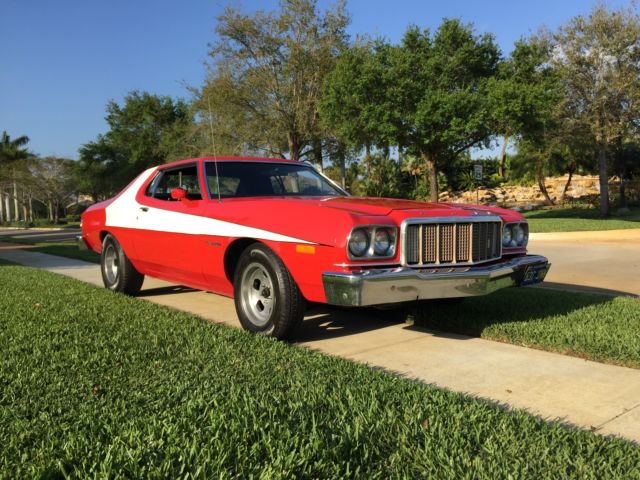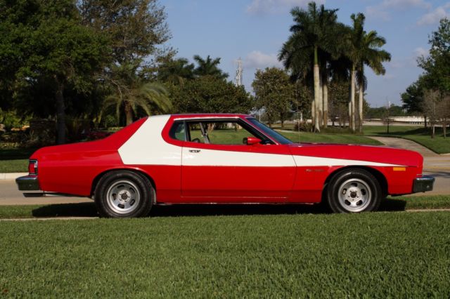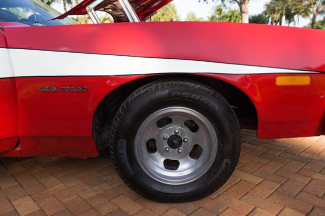 40th anniversary year rally's are taking place worldwide, it's agreat year to own and show this historic show piece.Car features a 302 engine, 3 speed automatic on the column. Vintage slotted mags, super clean and painted engine bay, All chrome is in good shape, some pitting around the drivers side rear tail light. Car started it's life as a basic Torino upgrades included change / addition of Gran Torino model front grill, front, header panel, front bumper, Head lights and bezels. Rear addition to upgrade to Gran Torino Model includes rear tail lights, chrome trim around gas cap door and Gran Torino gas filler door emblem.Interior features bucket seats with center console includes working gauges. Drivers side seat belt buckle mechanism needs replacing. New carpet / original floor pans no rust. Trunk is also rust free. Slight hint of rust above each corner passenger and driver side door roof between top of white stripe and door opening on red area. I have left over paint in original paint cans for both the white stripe and red exterior colors.Drove this car when purchased 13 hours non stop between 70 and 80 MPH with no issues what so ever. drove it consistently for past couple years without any problems. Fell free to contact me with any questions you might have. If your in South Florida for Auctions America classic car auction April 1-3rd contact me for a showing.