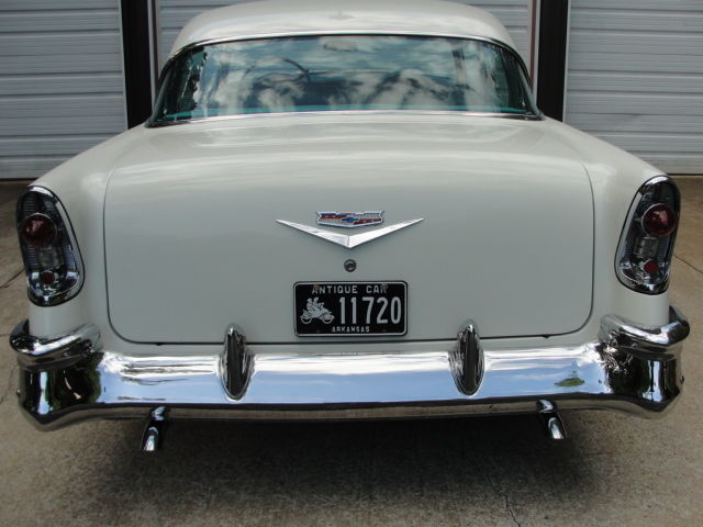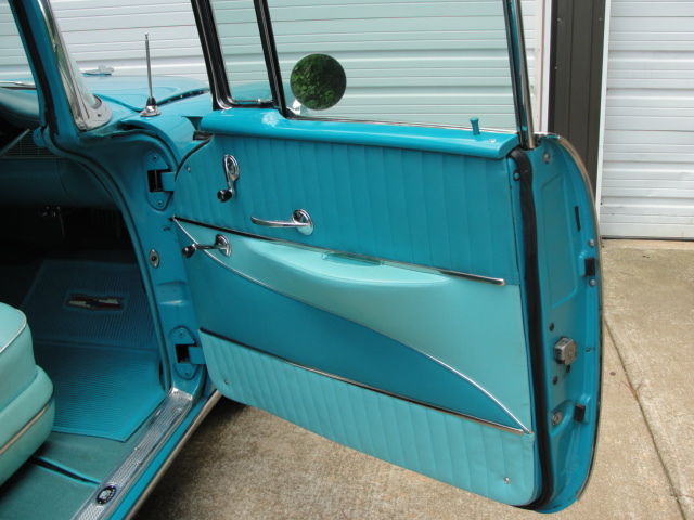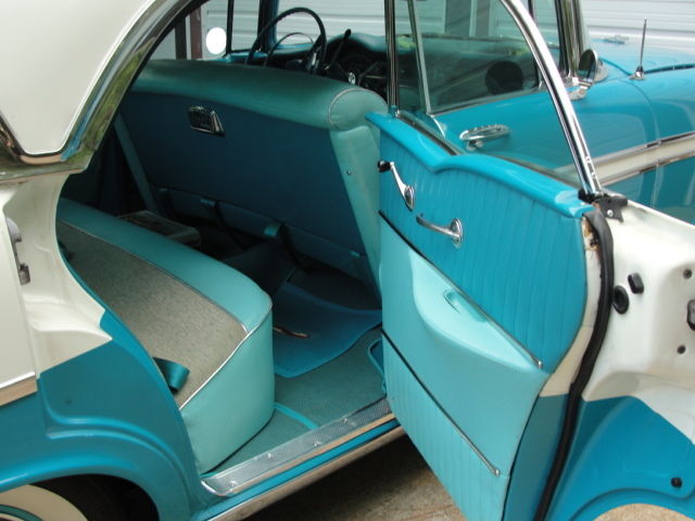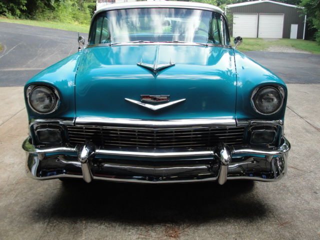 1956 Chevy Bel-Air 4dr Hardtop Super Clean Some Restore Done 53,700 Miles Original Interior , Was repainted many years ago Turquoise is super clean but White has some light cracks in roof. Also were the lead is in the original seams it looks like most do with some paint flaking there because of the acid from the lead that GM put in the joint . Engine and Transmission totally rebuilt about 3000 miles back. Engine has harden valves and seats and was change to a roller cam but with original lift so sounds original. Has power steering and electric wipers and new radiator. Inner fenders have been repainted. It has a new wiring harness by factory fit wiring to original. New Tires and rims repainted. New windshield and gasket New Fuel and brakes lines and suspension has new bushings, ball joints, tie rod ends, new springs front and back New Ex system front to back with original hangers New gas tank Front and rear bumpers have been rechromed Origianl Taillights with No pitting, look super nice Super sold in floors, no floor pans have been replaced. Car Is Sold As Is No Warranty If any questions please call 479-839-3945 come look or i can email you any pictures of what ever you would like to see. Thanks for looking
