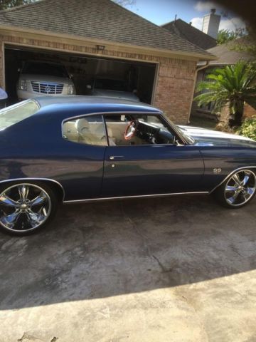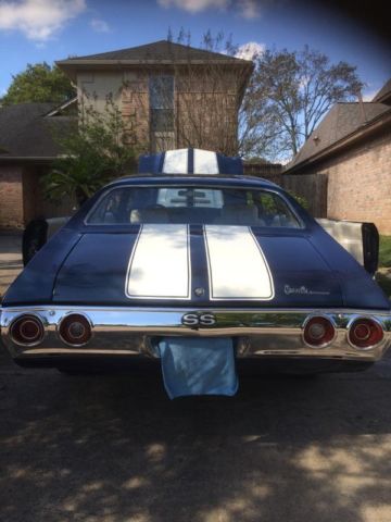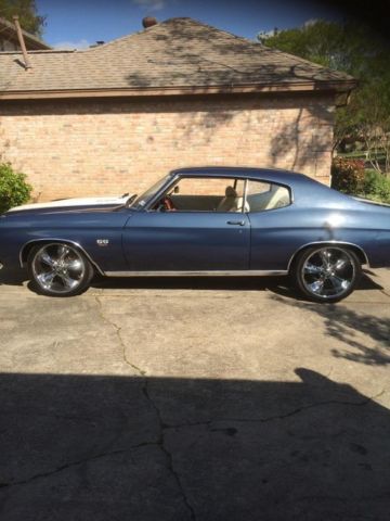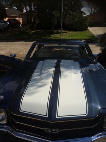 Celebrity owned - title will reflect, 1971 Chevrolet Chevelle SS 454, cams, headers, exhaust, intake, as seen in pic this motor has been professionally built and sounds like it looks! Transmission built to handle power!! 20" foose wheels, tires have 90%, heat/nor ac working! No rust, clean floor pans, new carpet, near perfect leather seats, all four power windows, horn works, wood grain steering wheel, b&m slap stick automatic shifter, clear title, garage kept! Below is a list of few things that have been done but overall, $30k has been invested! Engine replaced with GM 454 Performance engine-----425 HP, has less than 1000 miles Rotella synthetic 5w-40 oil used Remanufactured/rebuilt transmission included replacing pan and gasket Replaced speedometer cable and gear housing assembly Replaced front sway bar with new link pin kits and bushings Removed drive shaft and sent out for rebuild Replaced all four sections of parking brake cables Replaced rear section of brake line Wheel alignment included:caster,camber and toe reset on front. Camber and toe reset on rear axle Brake system flush Rear brake shoe service:includes replaced both sets of rear brake shoes, resurface both rear drums, lubricanting and cleaning rear hardware and wheel cylinders. Bearings repacked. Front brake disc service:includes replace front brake pads,resurface/replacement of both rotors and lubrication of caliper slides Removed and rebuilt rear differential with limited slip 373 gear ratio Tear down, diagnosed and adjustment of carburetor Replaced window wiper motor assembly Replaced circuit breakers New battery 3/25/15 O'reilly 5/yr warranty On Mar-31-15 at 19:33:51 PDT, seller added the following information: Original factory paint. More pictures and a video at Freechildmoon.tumblr.com On Apr-01-15 at 14:53:35 PDT, seller added the following information: On Apr-01-15 at 14:57:28 PDT, seller added the following information: