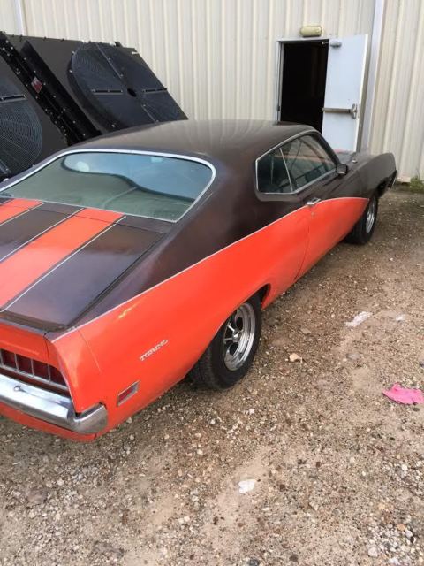 351 WINDSOR RUNNING AND DRIVING ITEMS REPLACED W/ RECEIPTS SPARK PLUGS AND WIRES CARB KIT MASTER CYLINDER WITH BRAKE JUNCTION BLOCK BATTERY UPPER CONTROL ARMS BALL JOINTS LUG NUT STUDS POWER STEERING CONTROL ARM SAFETY INSPECTION (TEXAS REQUIRES THEM) CAR RUNS AND DRIVES WITH ALL LIGHTS WORKING. SOME RUST ON THE PASSENGER SIDE DOOR AND FENDERS BUT NOT TERRIBLE. THE RUST IN THE PICTURES IS THE WORST RUST ON THE CAR. THE DASH IS IN ROUGH SHAPE AND SOMEONE TRIED TO STICK SOME BLACK VINYL TO IT BUT I REMOVED IT TO SEE THE REAL SHAPE OF THE DASH, OTHER THAN THAT THE INTERIOR IS IN OK CONDITION. THE TORINO RUNS AND DRIVES AS IS BUT NEEDS A RADIATOR SOON (STARTING TO LEAK) AND AN ALIGNMENT DUE TO THE FRONT END WORK (FRONT TIRES SCREECH ON THE PAVEMENT WHEN DRIVEN). THE DRIVER FLOORS HAVE BEEN PATCHED AS WELL AS THE FRONT SEATS REPLACED WITH POWER SEATS (I HAVE THE ORIGINAL SEAT BUT ITS VERY ROUGH). I WILL NOT DELIVER THE CAR BUT I CAN HELP MAKE ARRANGEMENTS WITH SHIPPING COMPANIES IF NEEDED AND THE LOADING OF THE CAR $1000 DUE AT AUCTION CLOSING AND THE REMAINING BALANCE DUE 7 DAYS FROM AUCTION CLOSING.