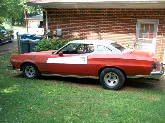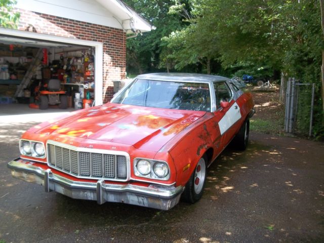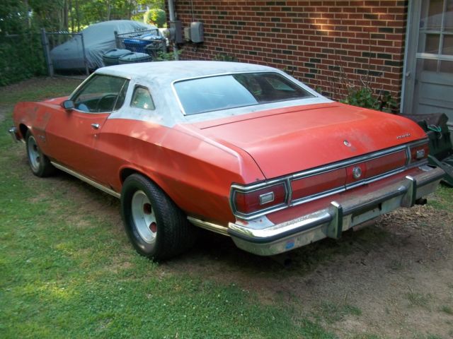 1974 Ford Gran Torino sport edition project car, Sport edition, all the parts are with the car, 351 V-8 (H code) has new battery, new water pump, new fuel pump, bought new brake pads for the front, (needs rotors turned), runs but needs rebuilt, automatic transmission needs re-built, floor shift car with a great center console, bucket seats (sport interior) new air shocks, comes with new dual exhaust (needs installed) comes from another torino from other project. also needs floor pans repaired & opera windows welded up, all the glass is great, windows roll up & down as they should, aluminum slot mag wheels- 15 x 7 front & 15 x 8.5 rear, rear wheels has mickey thompson N-50-15âs, all chrome pieces are with the car, comes with a extra dash, air cleaner, two- barrel carburetor, extra door panels. Have Tennnessee title thats clear, please look at all photos and ask any questions, Paypal deposit of $500.00 after sale is made, (or pay in full with Paypal), plus final payment due when picking the torino up, cash or bank cashier check. buyer responsible for transport or pick-up, torino needs to be trailered, (a large wide trailer needed- very wide car. Note: do not bid on the car if you cannot pay for the car or transport the car, had several issues with the last auction of the torino. Please contact me for any questions on the car.
