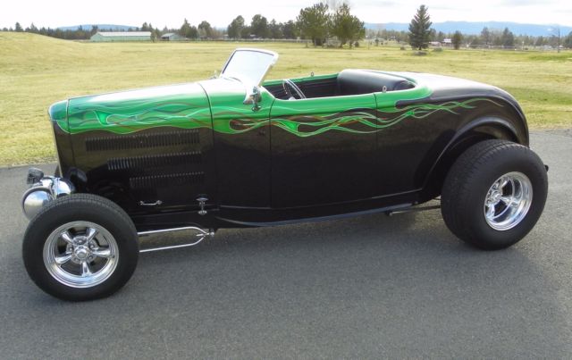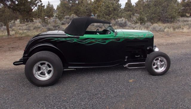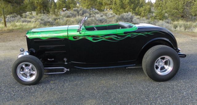 1932 Ford Roadster NO RESERVEI am selling my 32 Ford Roadster. This car only has 3000 miles and runs and drives excellent. This car was not a budget build and was built using all the best parts you could buy. Build cost was over 50KBody was built by Bear Products and is a composite body that is all steel reinforced, hidden hinges, smooth cowl, bearclaw latches, no exterior handlesSteel Rootleib 4- piece hood & sides with hotrod style louversTCI chassis, fully boxed. Polished Superbell axle with chrome hairpins, shocks, spring, batwings. Pete & Jakes Wilwood brakes with polished calipers,  Unisteel rack & pinion. Polished rear four-bar with coiloversCompletly rebuilt 454 chevy engine, turbo 400 trans, currie 9" Ford rearend, Runs cool and drives Great.Chrome SoCal WindshieldPolished moon tank with polished mount Tea's seat with seatbelts, Black ultra-leather, Ididt column, Billet Specialties wheel, under dash shelf for "stuff" Large trunk, finished to match.VDO gauges with custom polished insert, "Vintage Air" Heater (wired and runs although never did plumb the hoses) Lokar E-brake, Gennie shifter, battery disconnect in trunk, modern fuse panelBlack, Sid Chavers Bop Top is easily removable and has the original storage bagPPG basecoat clearcoat paintLED 50 pontiac tailightsClear 1932 Ford TitlePolished American wheels  If you have question you can email through this listing or.. I'm a real person selling my 32 Roadster........you can call me if needed. 541-410-1232A deposit is needed within 48 hours and payment in Full within 7 days of auction end. A bank transfer is fine. All funds need to clear prior to the car leaving my garage. The car can be securely stored for up to 60 days when paid in full with prior approval. If the car is sold outside of Oregon I will keep the Oregon license plate. You could fly into the local airport and drive this car home or I will help all I can with the shipper of your choice. Arranging transport will be up the the buyer. Redmond airport RDM is 15 mins from my house.1933 1934 1940 1946 1948 1949 Chopped Convertible Custom Street Rod Hot Ford Roadster