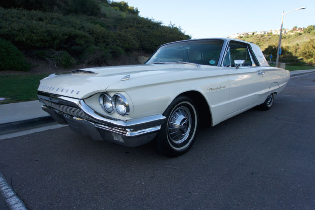 1964 Ford Thunderbird, 390/300HP, Wimbledon White W/Rose Beige Interior (Unique to 1964 & Rare Combination), Power Steering, Power Brakes, AC, Z Code Car (300 HP, 4V Carb, 10.1 Compression), Swing Away Steering, Has Convenience Safety Control Panel Which Was New In 1964, Lights Gauges and Electrical All Working And Look Great, New Radio & Power Antenna, Jack Assembly Still In Plastic In The Trunk, Exceptionally Clean TBird Which Is Why I Recently Spent Over $7500 Making It Even Nicer! Recent Repairs/Restoration - Valve Job Replacing Worn Valves & Seats, New Exhaust Manifold & Gaskets, Rebuilt Carburetor, New Battery, New Solenoid, New Starter, New Water Pump, Replaced Exhaust Connections, New Front Door Panels Including Door Carpet, Touched Up Rear Seat, Restored Steering Wheel, Repaired Minor Scratches And Tears In Interior Including Drivers Seat Redone, Body Is Very Straight And Chrome & Glass Look Great, Fixed Minor Paint Chips & Marks So Exterior Paint Looks In Very Good Condition, Body Looks Like It Has Had One Respray, (At First Thought It Might Be Original), Minor Detail & Touch Up Under The Hood Which Looks As Good As It Runs, Believe Car Was Owned By 2 Families For Many Years And Based On Appearance Was Properly Stored And Very Well Cared For, Was Told By Previous Owner That It Was A Low Mileage Car, Odometer Shows 15K, (Possibly 115K), Shows A Service Sticker In Door Jamb In 1999 Getting An Oil Change With 500 miles, So Not Many Miles Driven Since 1999... This Is A Very Nice & Well Equipped Original TBird With Over $7500 Spent Recently In Mechanics & Appearance, A Cool Looking Classic And Fun To Drive! #35412 In The Thunderbird Registry- $20,500.. obo Call Ron 949-633-4410