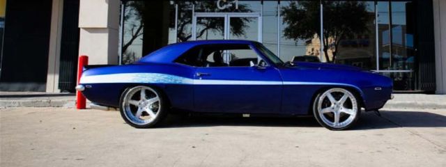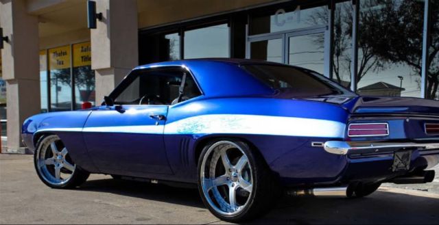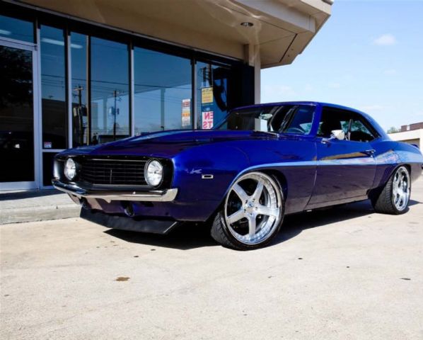 1969 Chevrolet "Blue Lightning" Camaro SS Coupe **FULL UNIT BODY RESTORATION** This '69 Camaro features a full modern style suspension system front to rear. Chris Alston Chassiswork front and rear suspension upgrades. The rear suspension h been upgraded to a 4-link rear suspension with a 9" rear e Blue Lightning rolls on 20" 3-Piece Forged Wheels custom spec'ed. This is a one of a kind wheel that will not be found on another. Most muscle cars are very impractical to drive, reason being they a carbureted and they typically don't start up when you need them. Carbureted cars are not reliable not matter how you look at it in terms of reliability practicality. The other reason would be that the braking system is extremely poor. That's why when this car was built they took the two most common reasons that destroy the drive able classic muscle and decided to build a car that would not compromise performance and safety! We ended up with a RamJet fuel injected Big 496ci V8 that makes 600HP, huge dual piston Wilwood disc brakes w hydraulic braking system and equipped with A/C and a whole lot more. Check out this classic beauty