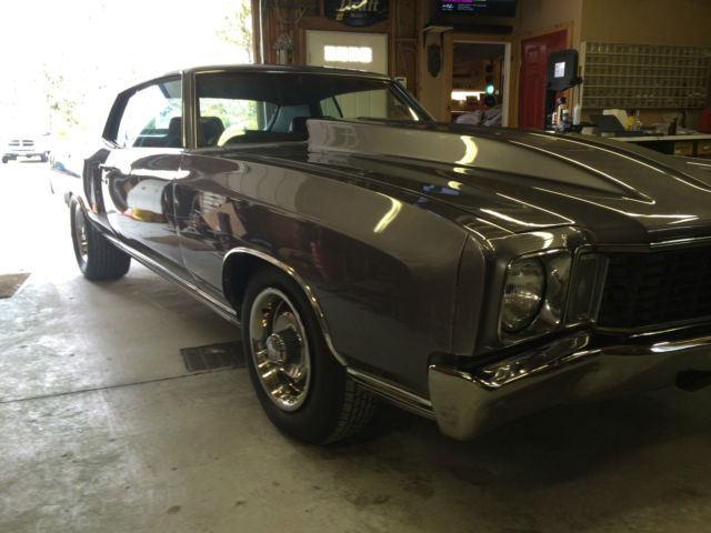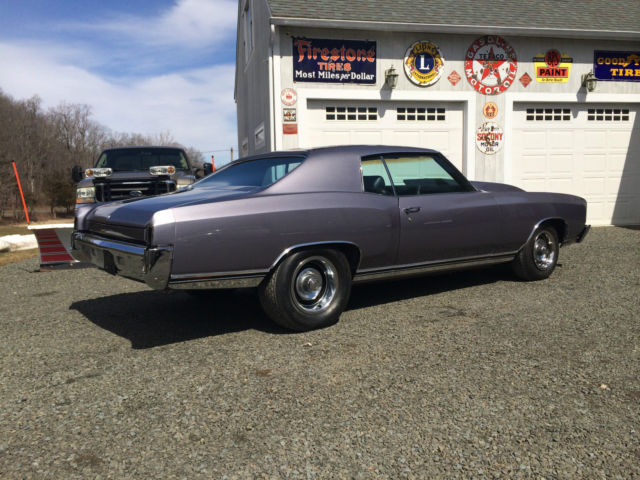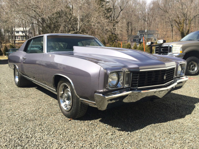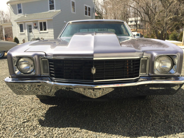 1st Generation 1972 Monte Carlo First off, this is a true 1 owner California Car, I have the original Ca. pink slip title signed by the original owner with paperwork back to day of purchase. Great documentation. Therefore this is still only had one registered owner. It came to Ct. in 2009 and began it's Big Block Transformation. This is a freshly built car, new paint, motor, tranny, rear, brakes, suspension, tires, interior, everything. This car has all of its original metal, never had any rust anywhere. Pics don't do it justice. This car is a one of a kind, Bad A** 1st Generation Monte Street Car. Runs on pump gas with no pinging. 1969 427 HP motor with Brodix Alum. Heads, Weiand Intake, Holley 750, MSD Ignition, 4" Cowl Hood. Turbo 400 with a 3500 stall, not a manual valve body, put it in gear and go, killer TCI Outlaw shifter and a 12 bolt rear with a 3:73 posi unit in it. Runs on high grade pump gas. It has Hotchkis Suspension and springs all the way around with KYB shocks. Wilwood front disc brakes, 34" Champion alum. radiator with puller fans, 2" Ceramic Hooker Headers, March Pulley set up, just to much to list it all. This car is ready to get in and tear it up. I took it out the other day for a cruise, it runs and handles incredible. A few minor gremlins and things need to be finished but all very minor. Heat not hooked up, wipers, etc. But I do have all the parts. This car is the nicest Monte that I have ever seen and it runs as good as it looks. I would be more than willing to show the car prior to purchase and help load for transport. Please contact me to make arrangements. I reserve the right to end this listing early as it is for sale locally. Changed the listing format. On Apr-10-15 at 13:30:11 PDT, seller added the following information: Would like to add that I have boxes of parts that go with this car including the not yet installed heater controls, wipers, extra chrome, another chrome front grill, original dash and gauge cluster, etc.