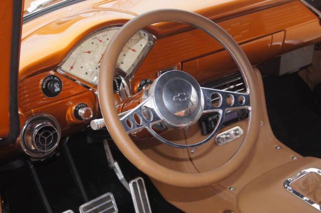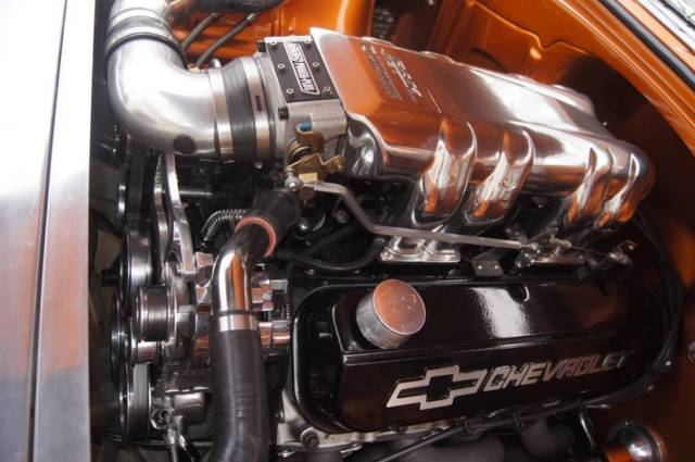 Car Has only break in miles on it, Can be driven anywhere. A real head turner and sounds like a top-fuel dragster running. I love this car but we are planning a move.. ** This car just named Budnik Wheels October Cool Ride of the Month ** Car : Original southern car, sold new in Birmingham AL. Body: All original body panels One small (dime size) patch put in under passenger tail light no other repairs Painted with 3 stage paint - Lions Mane Gold All new glass All new bumpers (custom rear Nomad) New grill All New or restored trim All new lights All new screws and fasteners Chassis Original frame boxed with additional bracing added to Accommodate big block horsepower All components powder coated and then painted with Dupont Imron paint NASCAR style truck arm rear suspension QA1 adjustable coil over shocks on all 4 corners Narrowed Upper and Lower Control Arms from Heidts Custom rear springs from Hot Rods to Hell New Billet Aluminum Drive Shaft Car weight wants full tank of gas and me inside is 4300 lbs Engine RamJet 502 Crate motor Polished everything possible Balanced and blueprinted Custom ECM Program Custom Rod Shop Polished Radiator Exhaust Custom build headers 3 "pipes to the back of car Boom Tubes (NASCAR style) mufflers Full Exhaust System Jet Hot coated in Black Brakes Heavy Duty Baer 6 Piston Bakes Remote booster under dash Steering Heavy Duty High Volume Power Steering Pump Transmission Tremec TK600 (heavy duty) 5-speed Interior Lexus SC430 Power Bucket Seats Original Rear Seat - re-sculpted to fit new front seats Rolls Royce wool carpet Power windows (all 4 work perfectly) A / C - Vintage Air New Classic Instruments in style and New AM / FM / CD / Satellite Stereo System with built in amp and base box in trunk New wiring Throughout the car This list does not begin to cover all the custom touches on this car, feel free to call me with questions My cell # 386 795 2378 if i miss the call leave a message and i will get back to you. Thank you for looking..