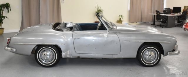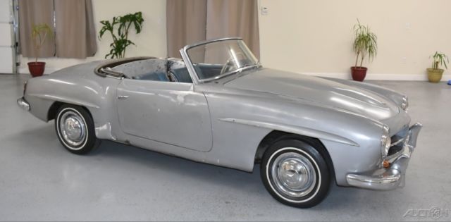 Dusty Cars LLC 1956 Mercedes 190sl silver/blue Vehicle Information VIN: 6500531 Stock: 1333 Mileage: 15,638 Color: Silver Trans: Manual Engine: I4 Cylinder Drivetrain: RWD Description Rare early 190SL "garage find" with desirable silver/blue factory color combination for restoration. Unmolested body with original fenders and all factory spot welds on the undercarriage intact. Stored and not driven in probably 30 years. We dry-ice blasted the undercarriage to expose the original metal and factory seams and welds. Does not run or drive, excellent basis for full restoration. Comes with original top frame and an after-market hardtop. Message Classic car for sale? We pay top dollar rare cars, any condition. Please contact us by visiting Dustycars.com, or call (415) Dustycars (415-387-8922). var guid = "167aef5d-19e4-4ac7-85ae-9b153242e2ad"; function setUpSimilarItems() { var sif = document.standardCreateElement ? document.standardCreateElement("if" + "rame") : document.createElement("if" + "rame"); sif.src = "http://showroom.auction123.com/dusty_cars_llc/similar/10995/6500531/index.html?baseColor=f4f4f4&trimColor=615138&from_ebay=true"; sif.id = "similarItemsFrm"; sif.className = "widget-similar-items-frame adui-clearfix"; sif.frameBorder = "no"; sif.width = "100%"; sif.scrolling = "no"; document.getElementById("similar-items-wrapper-a849812e-65d9-4083-b6a4-d177a41f9a63").appendChild(sif); document[guid] = sif; } if (document[guid] === undefined || document[guid] === null) { setUpSimilarItems(); } Terms We are a licensed California dealer: California retail buyers will be responsible for tax and license fees. Overseas buyers are welcome: We work closely with a local overseas shipper in San Leandro, California, who offers competitive rates. Please complete any inspections prior to bidding. Copyright © 2016 Auction123 - All rights reserved. - Disclaimer +- Auction123 (a service and listing/software company) and the Seller has done his/her best to disclose the equipment/condition of this vehicle/purchase. However, Auction123 disclaims any warranty as to the accuracy or to the working condition of the vehicle/equipment listed. The purchaser or prospective purchaser should verify with the Seller the accuracy of all the information listed within this ad. Selling a Vehicle? Create Professional Listings Fast and Easy. Click Here! var guid = "fb3b708a-1878-48fe-8e70-b19f2fe2d5af"; function setUpHitCounter() { var wrapper = document.getElementById("hit-counter-wrapper-49b87681-cce2-4c0b-9274-665b7dbb6a78"); var irm = document.standardCreateElement ? document.standardCreateElement("if" + "rame") : document.createElement("if" + "rame"); irm.src = "http://apps.auction123.com/counter/counterframesource.aspx?y=0&x=2762237&t=0"; irm.className = "adui-clearfix"; irm.width = "100%"; irm.frameBorder = "no"; wrapper.appendChild(irm); document[guid] = irm; } if (document[guid] === undefined || document[guid] === null) { setUpHitCounter(); }