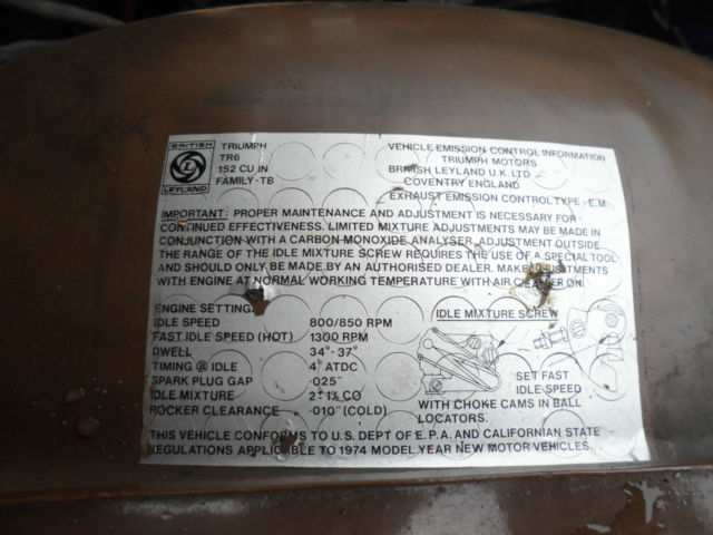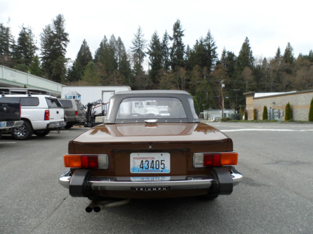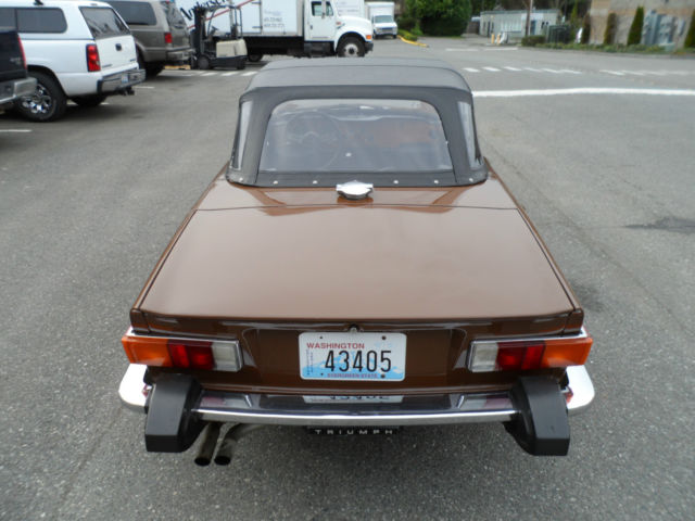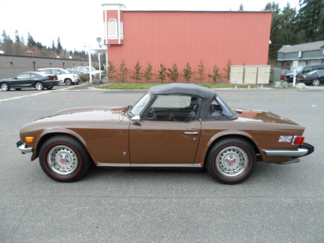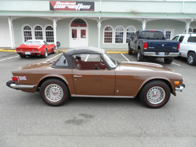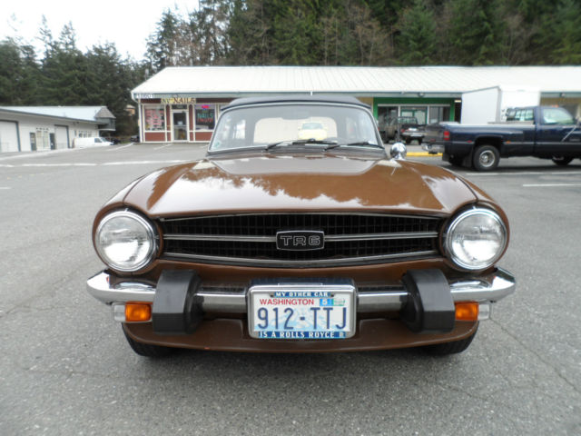 Description: 1975 Triumph TR6 Roadster Local 1 family owner, low miles (63000), rare maple paint code, GTU 376, mint body, perfect black interior & dash with no cracks and beautiful wood grain 6-cyl just serviced, new alternator, new 6-year top, original radio, redlines, boot, tonneau cover Runs super, drives as new, L.O.F., fuel tank full, detailed V.I.N. T28942CF About Us: Kompact Kar Korner has been here in Lynnwood Washington on the same corner since 1971. We obviously take our customer satisfaction very seriously. A great deal of our business here in the Seattle area is repeat and referral. We are a licensed, bonded and insured car dealer in the state of Washington, working closely with car enthusiasts from all over the United States and abroad. Since 1971, now 42 years on the same Korner here in Lynnwood.Terms & Conditions About payment: The winning bidder is to pay a $1000.00 deposit (Pay pal, credit card or cashiers check) within 24 hours of auction end. Balance is due (Bank check or bank wire transfer only) within 5 days of auction completion. About this auction: This auction process is a legally binding contract into which you enter when you click confirm on your bid. Please ask all the pertinent questions before you bid, unless I have answered them in the auction listing. This car is sold as-is / where is / as-equipped, with no warranties written or implied other than condition and equipment as described. First time buyer/bidders: Please take a careful look at Kompact Kar Korner's hard won, very high feedback numbers. Years of excellent service and accountability to our customers and suppliers here on eBay. If you win the car on eBay by being the highest bidder over reserve, you own the car. There is no grace period or right of rescission. The Winning Bid is not the right to simply come think about it. Also; It's a used car. You're buying it "as-is, as equipped, no warranty". Fee and Tax Information: UP TO $100.00 NEGOTIABLE DOCUMENTATION FEE WILL BE ADDED TO YOUR PURCHASE ! NO SALES TAX COLLECTED FROM OUT OF STATE RESIDENTS WITH 3- PIECES OF ID: UTILITY BILLING, TAX BILL ECT. PLUS A COPY OF YOUR DRIVERS LICENSE ALL WA STATE RESIDENCE TO PAY STATE SALES TAX. ALWAYS CHECK WITH YOUR STATE REQUIRMENTS ABOUT VECHICLE INSPECTIONS AND LICENCE REQUIRMENTS BEFORE AND OR PRIOR TO BIDDING. THANKS KOMPACT. BUYER RESPONSIBLE FOR SHIPPING CHARGESAS A COURTESY, AND WE STRESS AS A COURTESY, Kompact Kar Korner WILL ASSIST YOU IN SECURING TRANSPORTATION UTILIZING OUR NETWORK OF SHIPPING COMPANIES WITH THE PROPER LICENSING & INSURANCE REQUIREMENTS. RATES WILL BE COMMERCIAL. SECURE & CLIMATE CONTROLLED ENVIRONMENT OR OPEN CARRIER. WE TAKE CARE OF THE SHIPPING WORRIES, AS A COURTESY TO YOU, TO MAKE YOUR PURCHASE AN ENJOYABLE EXPERIENCE. VEHICLE AND/OR TITLE WILL BE RELEASED OR SHIPPED ONLY AFTER ALL PAYMENTS HAVE CLEARED ALL FINANCIAL INSTITUTIONS. BUYER RESPONSIBLE TO KNOW THE DMV REGISTRATION POLICIES OF THEIR HOME STATE.