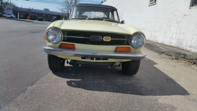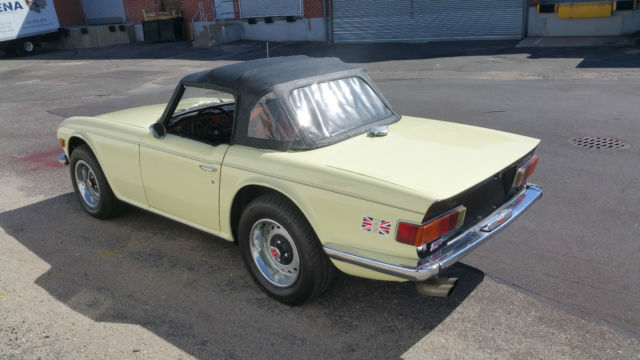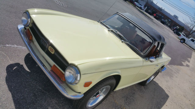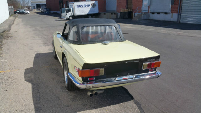 TOTALLY RESTORED TRIUMPH TR6 RUNS GREAT SHIFTS GREAT AND SOUNDS GREAT THIS CAR HAS NO RUST AT ALL CAME WAS ORIGINALLY FROM THE WEST COAST VERY NICE PAINT SHOWS WELL, SMALL FLAW IN THE PAINT ON THE PASSENGER SIDE REAR QUARTER PANEL SMALL CRACKING ALONG THE BODY LINE (EASY REPAIR) HARDLY NOTICEABLE THIS CAR HAS UNDERGONE A SERIOUS RESTORATION AND ALL THE WORN OUT PARTS WERE REPLACED WITH BRAND NEW PARTS I AM SELLING THIS CAR FOR ONE OF MY CUSTOMERS AND AM TRYING TO DESCRIBE THIS AUTOMOBILE ACCURATELY. CAR IS VERY STRAIGHT AND LOOKS GREAT MECHANICALLY STRONG NEWER TIRES WITH 90% PERCENT LIFE LEFT RESTORED A FEW YEARS AGO CLUTCH GRABS VERY LOW - NOT SURE IF THIS IS NORMAL OR JUST NEEDS ADJUSTMENT RIDES WELL AT HIGH SPEEDS THERE IS ALOT OF MONEY INVESTED IN THIS CAR AND IT SHOWS! THESE CARS NORMALLY HAVE RUST - THIS ONE DOES NOT RESTORED INTERIOR ASWELL PICTURES TELL THE WHOLE STORY. THIS CAR IS TURN KEY GET IN DRIVE IT TO CALIFORNIA AND BACK ! SUSPENSION HAS BEEN REPLACED NEW REAR SWAY BAR ASWELL NEW BUSHINGS ASWELL CAR IS A STRONG RUNNING RESTORED CAR THIS CAR IS 46 YEARS OLD PLEASE TAKE THAT INTO CONSIDERATION THIS CAR IS NOT A 2016 CAR IT IS A ANTIQUE AUTOMOBILE THAT HAS UNDERGONE RESTORATION INSPECTION OF THE CAR IS AVAILABLE AND RECOMMENDED IN PERSON I TRY TO DESCRIBE EVERY CAR TO THE BEST OF MY KNOWLEDGE CLEAN TITLE IN HAND 516 233 7788 - MIKE WJUST IN TIME FOR SUMMER!I know a few car haulers so getting this car shipped is not a problem, export out of the USA is not a problem either.(516) 233 7788 WITH ANY QUESTIONS