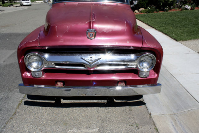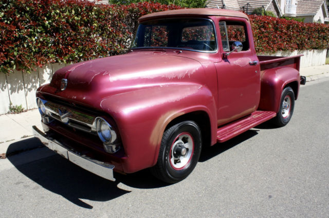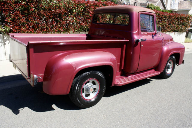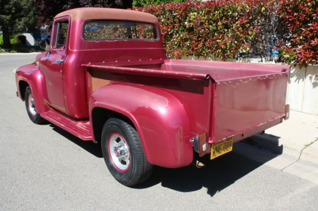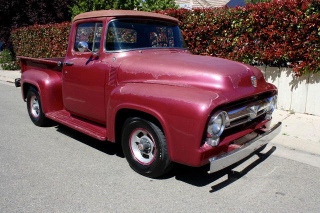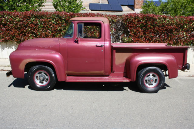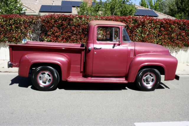 1956 Ford F100, Short Bed, Half Ton, Truck runs and drives well, just drove it 120 miles with no issues. Has brand new tires on it and drives well down the road. Truck was originally a 317 CID-Y block truck and now has 351 Cleveland with C4 Transmission. Stock rear end with highway gears, does around 60 mph comfortable. Body is in good shape with two rust spots, one on the passenger side cab corner and the other on driver side floor ( see pics and video of spots ) Truck is Burgundy in color with clear coat that is peeling. Has couple spots of etch primer where paint was peeling and was sealed. Interior all stock with comfortable seat. Lights all work. Wipers are electric motor and comes with blades. Has new gas tank. Wood in bed is older but still strong to haul stuff. Please ask if you have any questions before bidding. Will help ship anywhere in world. 351 Cleveland V8C4 transmissionHas Air Conditioning that was working but needs belt to go on compressor. Heater works Lights all work New gas tank and sending unit Stock suspensionBrand new tires Solid body with passenger cab corner that has rust spot and small spot on driver floor. Older Burgundy paint that has the clear coat peeling off in spots. Clear title that has matching Vin on title and frame rail Get your own valid XHTML YouTube embed code
