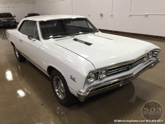1967 Chevrolet Chevelle SS-396- They don't get much cleaner than this! 1967 Chevrolet Chevelle SS-296 Turbo Jet 2-Door Coupe Exterior Color: White Interior Color: Black Stock Number: 7A159725 Mileage: 87,966 Engine: 396-SS Fuel: Gasoline Transmission: 4 Speed Manual Warranty: As Is - No Warranty Title: Clear VIN: 138177A159725 46 Full-Size Photos Vehicle Features & Options Ask the Seller a Question Email this to a Friend Start Credit Application var AM_SliderIndex = 0; var AM_SliderIndexMax = 46; var AM_Images = new Array(); var AM_Captions = new Array(); function AM_ScrollSlider(dir) { var viewport = document.getElementById("AM_divViewport"); var axis = "y"; var newIndex = AM_SliderIndex; switch(dir) { case "right": axis = "x"; newIndex += 1; break; case "left": axis = "x"; newIndex += -1; break; case "down": newIndex += 1; break; case "up": newIndex += -1; break; } if (newIndex < 0) newIndex = (AM_SliderIndexMax - 6); if (newIndex < 0) newIndex = 0; if (newIndex > (AM_SliderIndexMax - 6)) newIndex = 0; AM_SliderIndex = newIndex; if (axis == "y") { viewport.scrollTop = (newIndex * 80); } else { viewport.scrollLeft = (newIndex * 107); } } function AM_ViewPhoto(img) { document.getElementById("AM_imgMainPhoto").src = img.href; document.getElementById("AM_divMainCaption").innerHTML = img.getAttribute("caption"); } Vehicle Description Absolutely stunning white on black 1967 Chevy Chevelle SS 396. Older resto that still shines. This car is it. The 396 Turbo Jet starts right up and rumbles through dual exhaust with a note that any gear head will love. Grab hold of the HURST shifter and run this badboy through all 4 gears and head to the beach. The interior is in exceptional shape with all all the original trim, gauges, bezels and emblems in place. Upholstery is perfect as is the glass. The light tint could easily be removed but we actually like how it classes it up a bit. Specific details on drive-train to come: Additional Photos click on a thumbnail to view full-size photos Contact Information Name: Tim Walbridge Main Phone: (503) 469-9821 Email: tim@503motoring.com Vehicle Features & Options Vehicle Condition & History Order CARFAX Report Find out the history of this vehicle instantly. Get a CARFAX Report! Protect yourself from: » Major Accidents » Lemon History » Odometer Problems Get a Free CARFAX Record Check Order AutoCheck Report Don't buy a used car without first researching the car's history with an AutoCheck vehicle history report. Reports include our exclusive AutoCheck Score - a rating that allows you to quickly and easily understand a vehicle's past, compare vehicles and lowers your risk of buying a vehicle with undetected problems. Get a Free VIN Check and AutoCheck Score range Shipping Information Get a Free Shipping Price Estimate: Destination Zip Code: powered by We recommend uShip.com for vehicle shipping. uShip is an auction style marketplace where feedback-rated auto transporters compete for your business. List your vehicle for FREE! No Obligation to Accept Bids! Dealership Information 503 Motoring Sales Main Phone: (503) 469-9821 Email: sales@503motoring.com Business Hours Mon: 8:30am-5:30pm Tue: 8:30am-5:30pm Wed: 8:30am-5:30pm Thu: 8:30am-5:30pm Fri: 8:30am-5:30pm Sat: By Appt Only. Sun: By Appt Only. Location 5703 SW Arctic Dr Beaverton, OR 97005 Dealership Map Visit Our Website View Our Full Inventory Ask the Seller a Question Email this to a Friend Start Credit Application Powered by View Our Full Inventory Learn More About Us Auction Views: