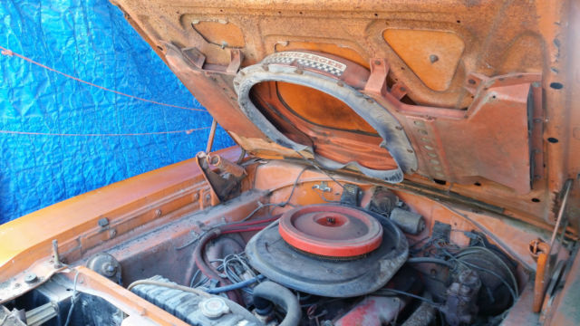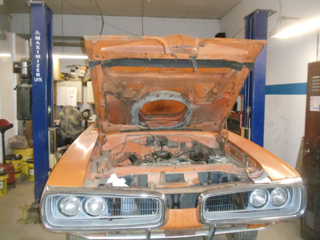 Go-Mango Orange! And orange interior. 383 4 speed post car. real Barn find 71056 Original miles Tic Toc tac Disc Brake Car Orange interior (saddle) Bucket seats 4 speed console car. (Console not there) Ram Charger Hood (N96) 3 speed wiper Bumperette's front and rear Post Car (rear wing windows) The car was in a shed with 6 inches of gravel on the floor Since 1996. Found out the Previous owners. One has the original Motor still. Not a lot of 4 speed cars in 1970 let alone a Go-Mango with orange interior bucket seat car. Drivers side floor has very small holes in it . (Repairable) Rear trunk pan should be replaced. And rear window channels in Back window need repair. Hood center has a repairable spot.Some Dents and dings,Left rear qtr was damaged at some point.They just Bondoed it in. Inside Qtr panel looks very good. Grille area is damaged. ( I do Have other parts for an extra cost if you want them.) We got the car to run on a gas can. so she fires up. Oil looked real good from siting. The last owner said he didn't put very many miles on it since he bought it.So I believe it to be original mileage after talking to previous owners. He has owned it for 37 year's I have Clean Title in Hand. I have tried to describe it as best as possible. Please ask any Questions. I will list responses as fast as possible. I will e-mail any pic's of car you want. It is always best to come see it for yourself. We are listing this car to sell. Please only bid if you really want to buy it. There is a non- refundable $500.00 deposit through PAYPAL. All other payment will be in cash or cashiers ck. Car will not leave and title not given until ck clears the bank. I reserve the right to sell the car at any time and pull my auction.The Car is for sale locally. Please do not ask for reserve price. Their will be a buy it now price. I am sure I have forgotten somethings, Will ad as needed. This Super Bee is original except for the motor. all brackets and small items still on car. Does have a road runner horn on car though. Please ask any ? Again if you are interested in the car please come and look at it. We have 100% score, please just ask, We will send more pic's to emails. we will not be able to post all of them here. Thank you Happy bidding