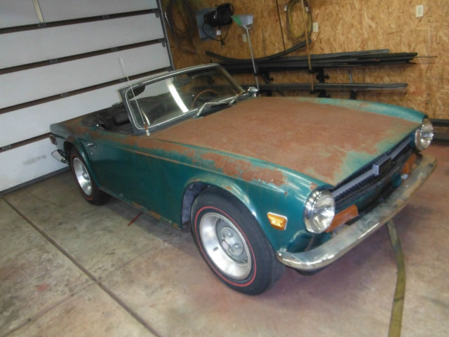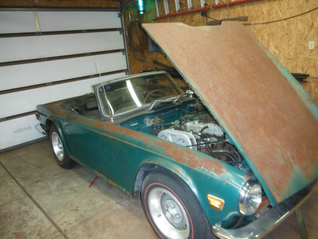 This is a 1973 TRIUMPH TR6, The previous owner had owned it when it had 37000 miles. The last trip with the car he took it on vacation in 1983 after that he parked in a barn and did not drive it after that it was in running owner when parked so that being said it has not ran for 32 years . The car has 59832 original miles , the paint is coming off the top of the car but the sheet metal looks better than the pictures look, The rust spots are as follows the floor pan is soft in some spots on drivers and passengers a hole on one rocked and on the driverâs side left panel. Other than that it is very good shape I donât think I have time to do the car so im am letting someone else give it a try.have not tried to start the car or turned it over but will try soon, come by and look at it , I do have a trailer so I can take it to you if you wish you will have to pay for a truck and expenses, give me a call if you want to talk 219Thi 508 4311 mike i am trying to add a picture of the drives rocker pannel but i cant please ask for more photoes to see rust hole
