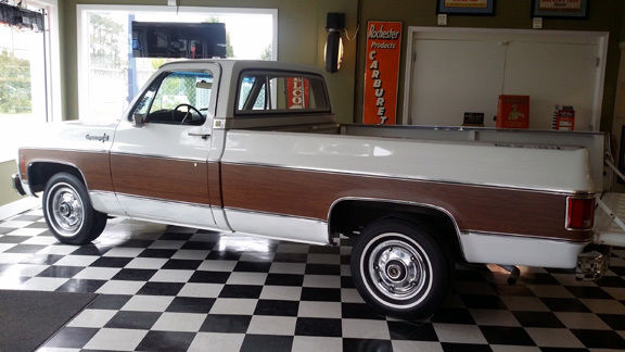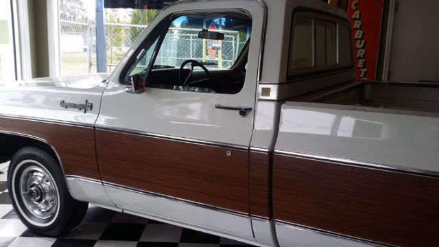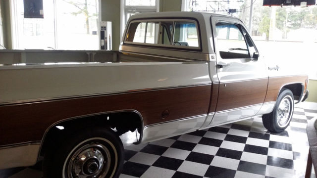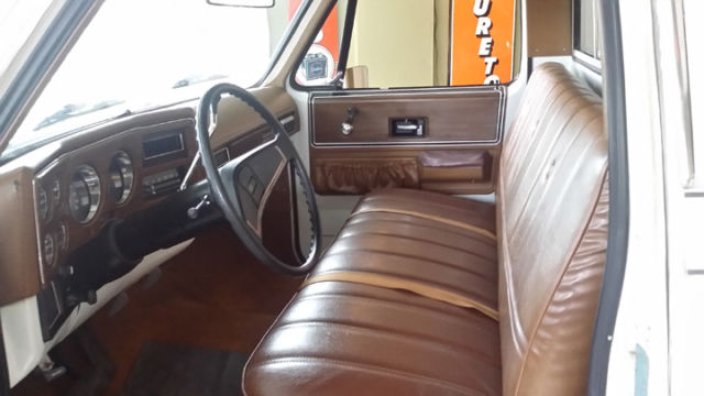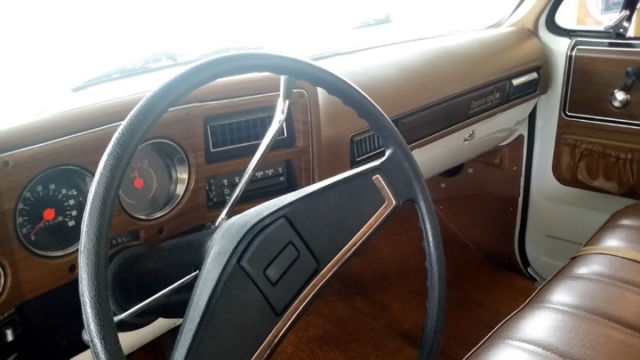 This clean one owner 129,000 mile truck with the rare Cheyenne Super package has been garage kept its entire life and still looks new inside and out. It is a 1/2 ton, long bed, two wheel drive with a 350 cubic inch two barrel engine and a TH350 automatic transmission, AC and power steering. The exterior is white with the rare wood grain side and tailgate panels. It has the correct full wheel covers, left and right small manual chrome mirrors, and a sliding back window, and it has been upgraded with a receiver hitch and electric trailer brakes. Recent cosmetic repairs include new wood grain, new taillight lenses, a new rear bumper, and minor rust repair over the rear wheel wells, a common rust area on this model truck. The chrome trim is in excellent condition other than some dings on the tailgate trim and the interior is clean except of a thin crack starting in the speaker opening on the dash board. The truck has a new single exhaust system and fresh tires. There aren't even any dents and scratches on the inside of the bed! If you want an easy to live with classic truck or are looking for an old truck to hotrod, you'd be hard pressed to find a 1974 model any cleaner than this one. Be ready to go to the car shows with this sweet ride.