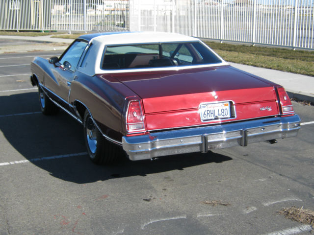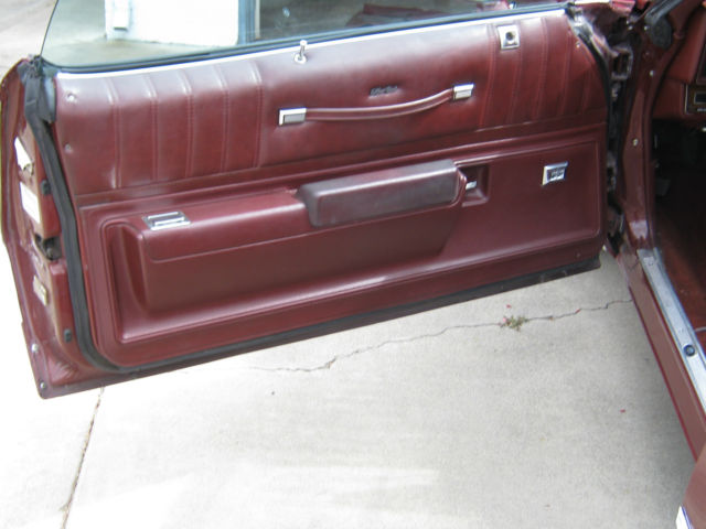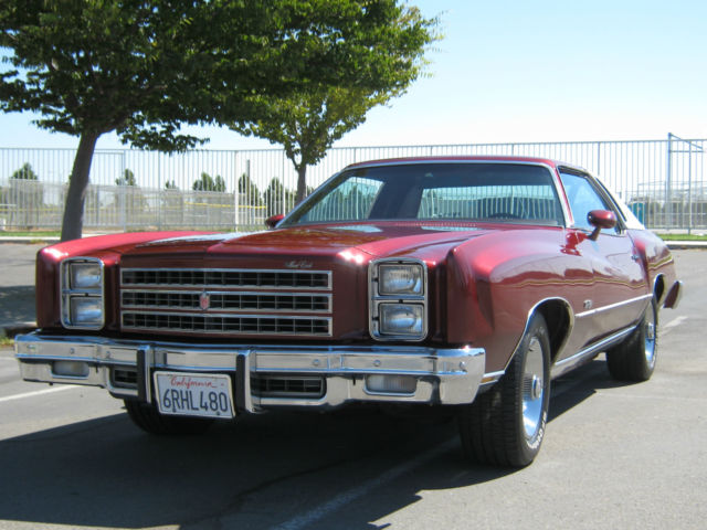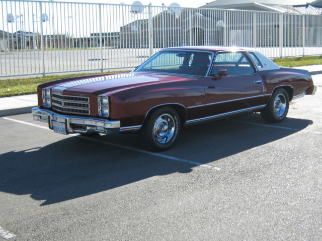 I repainted it to it's original maroon color and had new body side molding installed after the paint job was complete. I had a new vinyl top installed. Bought new emblems and opera window trim for the new top and new tail light emblems. Rebuilt the carburetor. Had the air conditioning system rebuilt with a new compressor installed to todays standards. Had new duel exhaust installed. Bought new rally trim rings. Replaced the transmission gasket and filter. Had new transmission mounts replaced and new tires installed.The previous owner had a new radiator, shocks, and wheel bearings installed in 2005. I bought the car from the original owners son in Las Vegas. His dad bought it new on 6/22/76 at Pollard-Wittman-Robb Chevrolet in Van Nuys, CA.I have the original build sheet and some other papers from when it was bought new. I've kept the car garaged and covered as long as I have owned it. It has 82,000 original miles. The car runs and looks great. I always keep the fuel tank full with fuel stabilizer so no rust forms in the tank. I take it out a least once a month to get the engine hot and get all the fluids moving around. I have all the receipts for the work I have done. I also have some of the receipts from the previous owner. " THE CAR IS BEING SOLD AS IS WHERE IS WITH NO WARRANTY"