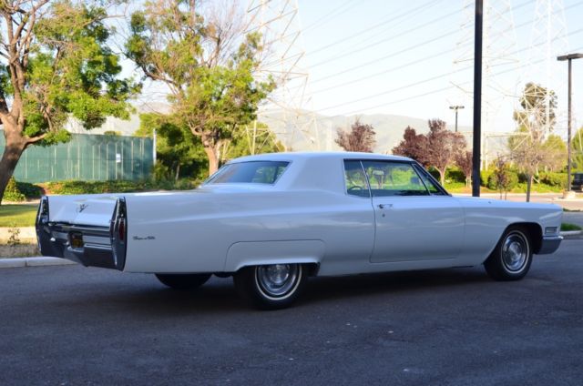 1968 Cadillac COUPE DEVILLE 2 DOOR Description EuroSpeed Imports 43224 Christy St Fremont, CA 94538 (408) 307-4093 1968 Cadillac COUPE DEVILLE 1968 CADILLAC COUPE DEVILLE, WHITE/BLACK INTERIOR I'M THE SECOND OWNER CAR, ORIGINALLY OWNED BY A SHERIFF, HAS 99K ORIGINAL MILES, RUNS GOOD , MOST OF THE CAR HAS BEEN RESTORED AND COMPLETELY GONE THROUGH, REBUILT ORIGINAL 472 ENGINE, ORIGINAL AUTOMATIC TRANSMISSION REBUILT, ORIGINAL REAR AXLE REBUILT, ALL NEW STEERING COMPONENTS (CENTER DRAG LINK, TIE RODS, PIT-MAN ARM, IDLER ARM, SLEEVES), ALL NEW BRAKE COMPONENTS (MASTER CYLINDER, DRUMS, WHEEL CYLINDERS, BRAKE SHOES, HYDRAULIC HOSES, WHEEL BEARINGS, BRAKE HARDWARE), ALL NEW POWER STEERING COMPONENTS ( HYDRAULIC PRESSURE LINES, POWER STEERING PUMP, BELT, HOSES), NEW CHARGING SYSTEM ( ALTERNATOR, VOLTAGE REGULATOR, POSITIVE AND NEGATIVE CABLES), NEW OEM AIR PUMP, NEW AIR CONDITIONING PARTS (A/C COMPRESSOR, BELT, DRYER, VACUUM ACTUATORS, HOSES), NEW SUSPENSION PARTS ( STRUT BAR BUSHINGS, SWAY BAR LINKS, SWAY BAR BUSHINGS), REPLACE FLASHERS, INTERIOR LIGHTS, 4 NEW SENSATRAC SHOCKS, NEW INNER AND OUTER WINDOW SCRAPPERS REPLACED ON FRONT AND BACK, UPGRADE IGNITION SYSTEM HEI ONE WIRE SYSTEM, NEW SPARK PLUG WIRES, NEW FUEL PUMP, FUEL FILTER, HARD AND SOFT LINES, NEW COOLING SYSTEM COMPONENTS (THERMOSTAT, WATER-PUMP, BELT, RADIATOR HOSES, HEATER HOSES), FLUSH RADIATOR, REPAIR ALL 4 POWER WINDOW MOTORS, REPAIR SEAT MOTOR AND TRANSMISSION, NEW EXHAUST SYSTEM FROM FRONT TO BACK, NEW UNIVERSAL JOINTS ON THE DRIVE-LINE, COMPLETE UNDERCOATING DONE ON THE WHOLE CAR, NEW WHITEWALL OEM TIRES, ORIGINAL WHEELS AND HUBCAPS, ORIGINAL SPARE TIRE, AFTER MARKET STEREO THAT FITS IN THE ORIGINAL SPOT HAS AUXILIARY AND CHARGER CABLES, NEW CARPET AND DYNA-MATE UNDERNEATH, NO CRACKS ON THE DASH, STEERING WHEEL HAS NO CRACKS AND ITS WRAPPED IN LEATHER, CUSTOM CADILLAC FLOOR MATS, ALL BULBS ARE REPLACED ON THE WHOLE CAR, CUSTOM DASH COVER, ALSO THE HEADLIGHT SYSTEM HAS BEEN UPGRADED TO HID, REPRO-FACTROY STEREO WITH I-POD BLUETOOTH AND ALL NEW 6X9 SPEAKERS INCLUDING THE CENTER DASH SPEAKER, NEW WIPER MOTOR, NEW 4 BARREL SUMMIT CARBURETOR, ULTIIMA YELLOW TOP BATTERY, KEY-LESS ENTRY ALARM SYSTEM WITH A MONITOR, REPAINTED ABOUT 5 YEARS AGO TO THE ORIGINAL PAINT, ALL THE CHROME IS IN EXCELLENT SHAPE, NO RUST ANYWHERE, TRUNK IS CARPETED, NO DENTS OR ACCIDENTS, HEADLINER IS ORIGINAL AND IN EXCELLENT SHAPE, SUN VISORS ARE ORIGINAL, SEATS ARE ORIGINAL IN GOOD SHAPE, COMPLETE STEERING ALIGNMENT, DRIVES STRAIGHT, RUNS SMOOTH, CRUISES AT 80/90 MPH NO PROBLEM, NO LEAKS, ALL THE RUBBER UNDER-BODY GUARDS ARE REPLACED, THIS CAR HAS BEEN A 4 YEAR BUILD, I AM SURE I AM FORGETTING OTHER NEW PARTS THAT HAVE BEEN ADDED TO THE CAR, PRETTY MUCH EVERYTHING WORKS ON THIS CAR AND IT'S A GOOD EXAMPLE OF A RUST FREE CALIFORNIA CAR, HAS MATCHING ORIGINAL BLACK PLATES AND ORIGINAL DEALER PLATES STILL ON THE CAR, CURRENTLY REGISTERED, I HAVE SPENT OVER 25000.00 JUST IN PARTS NOT INCLUDING LABOR CLEAN CALIFORNIA TITLE ON HAND. FOR MORE INFORMATION PLEASE CALL SAM 408-307-4093 Photos Vital Information Year: 1968 Exterior: Make: Cadillac Interior: Model: COUPE DEVILLE Stock: CPE68347 Mileage: 99000 VIN: VDP775 Engine: 8 Cylinder Engine