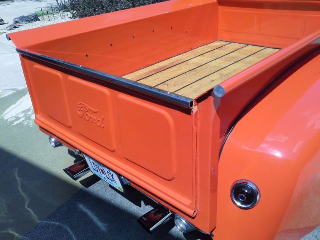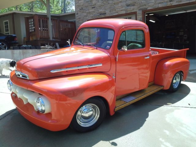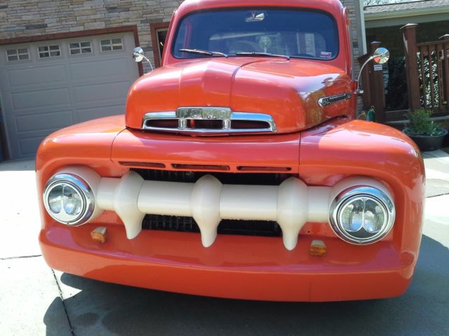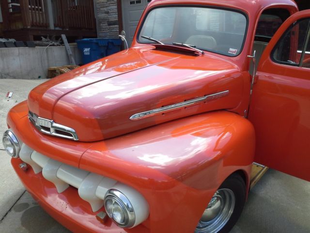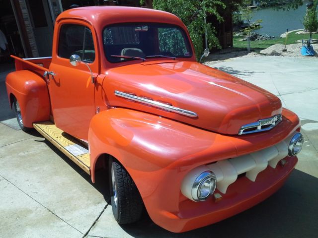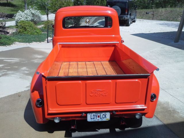 At auction is an amazing 1951 FORD F - 1 resto-mod ready for the car show or trip to the store. Less than 1800 miles on rebuilt and chromed out 429 Cobra jet. Power steering, power brakes, automatic transmission make it an easy drive. Power bucket seats and gorgeous oak running boards. Big chrome tail pipes give it a healthy roar and look great. New rear shocks in 2015. Ghost flames accent the bright orange paint job. All lights and signals working. State inspection in 2013 (switched to historic plates). Oak bed is in great shape. Moon hubs are awesome and tires are all in great shape. Insured for 35,000. this beauty is being sacrificed at 20,000. I have always used premium unleaded gas. Passenger side door needs "encouragement" to close (a little slam). Vehicle is for sale locally and may be delisted at any time. Buyer responsible for delivery. Don't miss this one! The tailgate on this truck is NOT operable. It has been welded closed. I have posted all new updated pictures and tried to highlight any blemishes. Please examine the pictures carefully. CD player is located under passenger seat and is currently disconnected, but easily reconnected. No A.C., no heat. Built for power not frills. This is an F-1 not an F-100. If you still have questions, I'll try to answer them but...