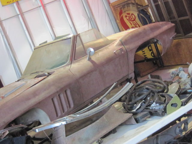 VIN PLATE READS: CHEVROLET DD 194675S112868 (this VIN indicates mfd 3/65.) ODOMETER READS: 56259 miles.>ORIGINAL BIG BLOCK HOOD, 3/4" sway bars, DASHBOARD, GAUGES (tach yellow lines at 6300-redlines at 6500), RADIO/STEREO, INTERIOR CABIN, HAS SPOT FOR A TRANSISTOR BOX (WHICH I UNDERSTAND TO MEAN IT WAS A HIGH PERFORMANCE ENGINE,) CONVERTIBLE ROOF FRAME & COVER, STEERING WHEEL, CONSOLE, DOOR PANELS & HANDLES, BOTH TOPS (BOTH BLACK,) TRANSMISSION, AND REAR END ARE HERE. PROBABLY A SIDE PIPE MODEL. AS YOU CAN SEE FROM THE PICTURES, THE BODY IS OFF THE FRAME. SOME CRACKING IN BODY AT STRESS POINTS. ALL PARTS PICTURED THAT GO WITH THE CAR ARE INCLUDED IN THE SALE. THE WHOLE PROJECT IS OUT OF THE BARN WHERE IT WAS DISCOVERED AND IS NOW IN AN ACCESSIBLE, CEMENT-FLOOR GARAGE featuring EASY ROLL-AROUND ACCESS. I'VE HAD SEVERAL INSPECTORS/BUYERS WHO NOTE THAT THE BIRDCAGE IS IN GOOD TO SUPERIOR CONDITION. >>>important note: CAR HAS NOT BEEN REGISTERED FOR OVER (I think) 45 YEARS, SO TITLE IS BY GEORGIA BILL OF SALE ONLY!!!<<< LAST REGISTERED (I THINK) IN 1971! NOTARY AVAILABLE ON SITE. ANY ADDITIONAL TITLE/REGISTRATION WORK or EXPENSE IS THE SOLE RESPONSIBILITY OF THE BUYER.>>>>>LOCAL PICKUP ONLY.<<<<< $2000 NON-REFUNDABLE PAYPAL DEPOSIT FOR SUCCESSFUL PURCHASER due within 48 hrs. BALANCE TO BE PAID in GOOD FUNDS due within 7 DAYS THROUGH BANK OR IN PERSON AT TIME OF PICKUP. BODY IS PROPERLY MOUNTED ON A PROFESSIONAL RESTORATION DOLLY, WHICH IS NOT INCLUDED IN THE SALE, BUT IS AVAILABLE FOR EVEN SWAP or SALE AT TIME OF PICKUP FOR AN ADDITIONAL $700.