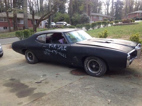 90% rust free This is a 1969 Pontiac GTO 242 base model. I think the car was made in Atlanta GA. I have owned the car for nearly six years and have done a lot of work that someone looking for a good project would appreciate. The car has had a NEW RIGHT REAR QUARTER PANEL REPLACED, as well as the INNER QUARTER AND DRUNK DROP OFF in a local body shop. the front bumper while Chrome FYI IS A GTO BUMPER. It iscalled the endura DELETE OPTION. Transmission BOP TURBO 400 with TCI KIT from summit . VIN #242379r143089 Clean Title I was able to get most the parts from a lemans parts car . The body shop used some of the quarter to patch the LEFT quarter panel where as the RIGHT quarter panel was , entirely replaced. The car has had new ROCKER panels on both sides replaced. The trunk tail-panel was also a donor part from the parts car because they do not reproduce that part for the 1969 GTO. the dash, floor and trunk are all original . I used the tail lights and dash from the lemans donor but i have the original dash. This car needs full paint and interior but all MAJOR body work is DONE ALL READY There is some rust on the bottom of the front right fender that needs a patch. it will also need a hood . There are very very few PIN HOLES in the floor the measure 1-2 cm and are 7 in number . The motor is out of a Catalina it is a Pontiac 350, I DO HAVE THE PONTIAC 400! COMES WITH IT . The motor thats in the car leaks a little oil but is reliable enough that i drive it everyday as it is my only car. The Pontiac 400 that comes with it is a 1972 pontiac 400 block that has been magna fluxed cleaned and bored .30 over by chasten engines jonesboro GA It has Speed Pro Forged Pistons, Forged Rods from Butler Performance Balanced and blueprinted at Chastain Engines as well. the 350 thats in it is a 76 350 wit the 6X-4 heads which would do well for the new 400. you can see a video of the car before all the work was done to it on YOUTUBE .just type cory buice gto on youtube its the black car . any questions call me! CORY 7 7 0 875 466 6