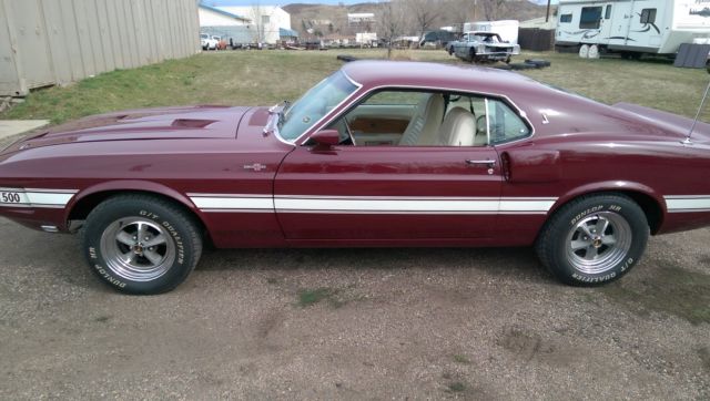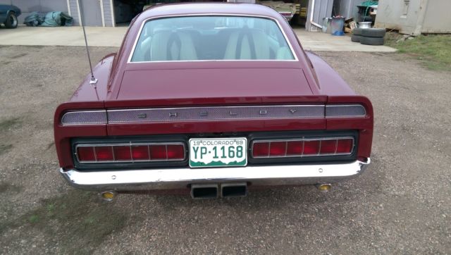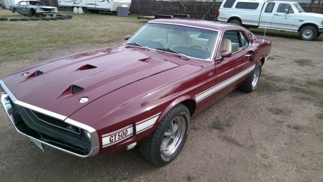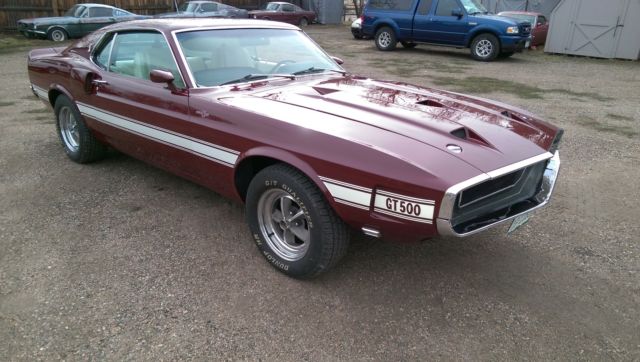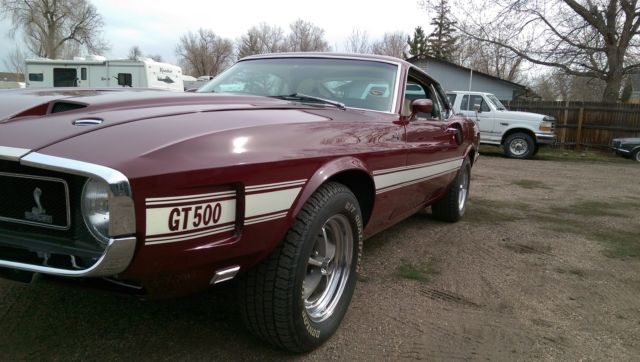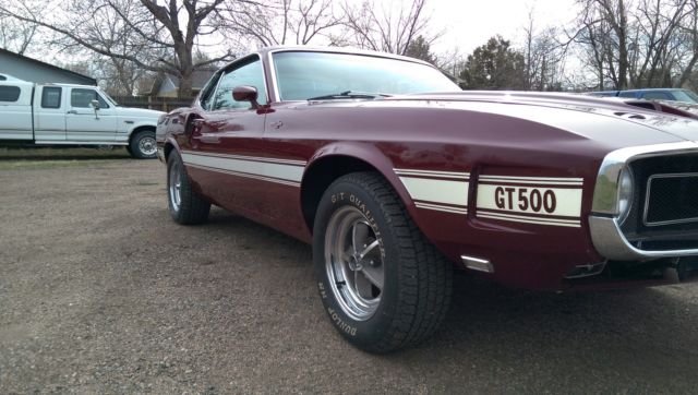 Up for sale from The Mustang Ranch in Golden, Colorado. This Shelby is one of the cars that I have imported from a little town in Belgium called Turnhout from a private family collection. I am selling this car for a client of mine. Attached is the story in the annual Shelby publication. This Shelby has just a little over 58,000 miles on her. As you can see she has done some traveling in 46 years. At some point the origional short block was swaped out and now there is a 428 PI in its place with the correct heads, manifolds, carburetor and distributor. I am not sure about the transmission but the rear end is correct. The shell, associated sheet metal and fiberglass are all origional. There is no metal replacement due to rust or damage. Minus a little cleaning and detailing the drivers and passengers door strikers need to be adjusted. Please call and ask as many questions as you can about this piece of American history. There is no guarrantee or warranty on this car. Buy with confidence, go to Google and type in the browser "Rich Barnes The Mustang Ranch Golden, Colorado" get to know who you might be doing business with. Best regards, Rich at TMR 303-931-5412 Be sure to check out this youtube video! https://www.youtube.com/watch?feature=player_detailpage&v=HZzANqxqgyQ Belgium Treasure Trove - Mustang Monthly Magazine 1969 Shelby GT500 V.I.N. 9F02R480076. This was the 76th car built witha D.S.O. code 842503. The 84 code is the code for "Home Office Reserve"The car was first sold in Oxnard CA. By Robert J Poeschl INC. to Robert A Kingon April 1969. It then was shipped to Great Britain and had several owners one notably Fight lieutenant of the R.A.F. Alan Storey. He owned the car for about 10 years. After two more owners it went to the Verschuren collectionin Turnhout Belgium. Rich Barnes of The Mustang Ranch in golden Coloradobought 6 cars including this car from the collection and shipped them backto Golden. Knowing Rich for many years and living close to his shop I Purchased the car February 2011. This car has all the prober numbers on thechassis and is in the SAAC registry. The mileage on the car is presently 58465The mileage can be fully documented by the fact the previous owners had to have yearly M.O.T. inspections in England. I have all the Test Certificates. the car also has a Marti Report as well. The exterior color (Royal Maroon) is a rarecolor combination as only the very early cars had this color. This car has all itsoriginal body panels and is rust free in all respects. It has a very clean under sidein original condition. I replaced the original interior and carpet. The engine wasrebuild by the owner in England and has very low miles.