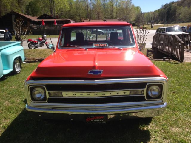 I'm selling my 70 c10 pickup. Its a clean, maintained pickup. Pickup has good paint and new chrome from LMC truck also has a new set of black/chrome wheels. Truck is 6 lug drums all the way around. the engine is 350 unsure of the transmission everything works as it should for a truck of its age. It is driven multiple times a week. Truck has great sounding exhaust (flowmaster I think). Most of the work to this truck was done prior to me buying it with the exception of the cosmetics. Truck has late model bucket seat with a repro center console. The truck is not a show truck just a really sharp driver, it gets a lot of attention locally. The negatives to the truck is no A/C and the bed has a late model bed cover due to the bed not being painted and their is a few rust spots in the front floor of the bed, easy fix just haven't gotten around to fixing it. come take a look. **Truck is being sold as is, come look at it! **Truck is also for sale locally and I reserve to right to pull the listing at any time. ** Call 1-864-245-0323 for info NO TEXTING