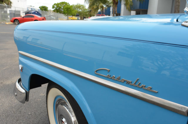 SEE VDIEO 1955 Ford Customline Show Car with original engine! Up for sale is a frame-off restored 1955 Ford Customline. Many hours and money has been invested in this exceptional build. It's quite unique to find one of this stature with a continental kit. I have over 90+ pictures of the car here: https://flic.kr/s/aHskx7CgkFVIN Number: U5RG-160571 U= 272 cid V8 5= Year built 1955 R= Assembly Plant: San Jose G= Customline 2 door Production Number: 160571 Body 70B: Custom Deluxe Tudor Color X: Regatta Blue Trim C Interior Month 17F: June Production Code: 11839 This Car drives exceptionally well, you can take it to the car shows & for weekend cruises. The Customline is powered by its V8 engine that is matched to an automatic transmission. It still retains its original engine that came from the factory, which has been rebuilt. Engine Bay is well detailed. Has Dual Exhaust that sound really nice. See the video. The car received a full restoration; it was sand blasted, recoated, and painted back to its original color. It was a rust free frame and floorpans are said to be âlike newâ. The Body is straight as an arrow. All doors, trunk, hood are all aligned like they should. It has always been garage kept and well taken care. All the exterior chromes are in great shape. The Rear bumper has an extension to accommodate the aftermarket continental kit. The car comes with dual spotlights, fender skirts, dual sideview mirrors, radio, radial whitewall tires and factory full wheel disc. The Interior is splendid! Same tone to the exterior, and has patterned fabric seat interests within the vinyl covered interior. No tears on the seats or cracks on dashboard. All the glass and chrome trim are very nice. Iâm located in Miami about 30 minutes away from the airport. Feel free to come see the car in person. Any inquires email me. $500 non-refundable deposit required within 24hrs of buying. Sold As-is. Thanks for looking. If youâre looking to finance I would recommend JJ Best. They can finance your classic car or hot rod and are very pleasant to work with. Contact info: For those interested you can call me at 305 five four two 5662. If I don't answer just leave me a voicemail.