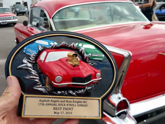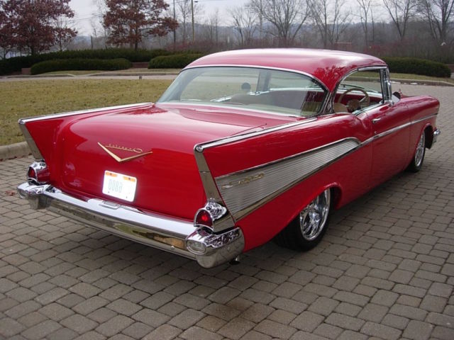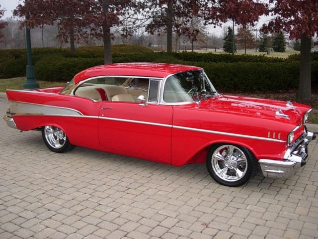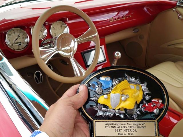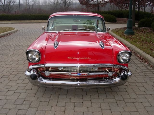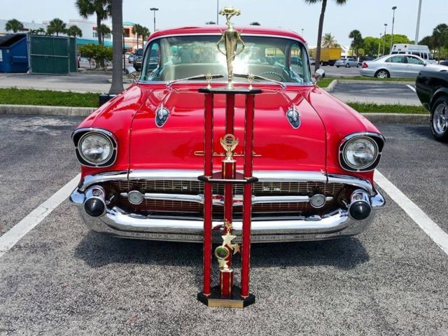 Every inch of the fit and finish is perfect on this car from top to bottom with complete restoration and customization photo documentation (message me for more details). Engine is a completely polished 383 Chevy Stroker engine with Roller rockers and Roller cam, polished Aluminum heads, stainless headers and a polished Holley Ram fuel injection. Cooling is provided by a Ron Davis Racing polished Aluminum radiator with 2 computer controlled fans. Exterior features a perfect Red finish with all new or refinished chrome, stainless and tinted windows all around. Foundation of the car is a built Jim Meyers custom frame, with a 9â Curry rear end with 3:89 Pro Track gears, Panda Bar 4 link, Polished A-Arms, coil over suspension front and rear. Car rides on 18â Billett Specialty wheels.Transmission is a smooth shifting 700R4.Stopping is provided by polished, drilled and slotted Wilwood disc brakes on all four corners. Interior is a work of art with all Cream and Tan Leather with matching carpet and trunk, custom dash and gauges, A/C, custom center console front to back, bucket seats in front, push button start, power windows, and a tilt polished column.More custom options include: power steering, stainless gas tank, stainless exhaust front to back.PLUS...this car has am amazing $10,000+ sound system featuring a Pioneer 8000nex, Morel Speakers, and Boston Acoustics Amps.This car is a Multiple Show Winner at Goodguys, Super Chevy, and many other nationally...as well as Best of Show, Best Interior, Best Paint, Class winner, Best Engine, Best in Class 57, Best Tri -Five 55-57 locally in South Florida. NOT INTERESTED IN TRADES!