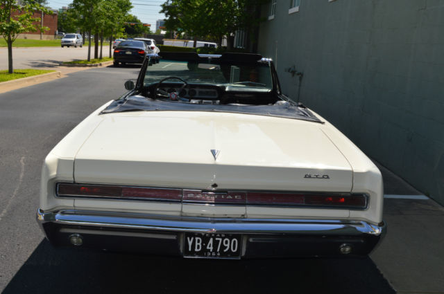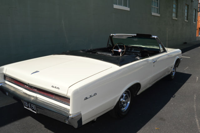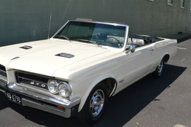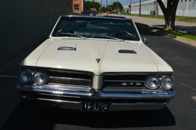 1964 PONTIAC GTO CONVERTIBLE PHS VERIFIED WHITE WITH BLACK INTERIOR IT'S THE REAL DEAL EQUIPPED WITH: 389 V8TRI-POWER CARBURETORS- ORIGINALLY 4 BARREL4 SPEED TRANSMISSION- ORIGINALLY 2 SPEED GLIDEUPGRADED POSI REAR ENDPOWER STEERING AND BRAKESPOWER TOPFACTORY TACHOMETERCONSOLESEAT BELTSAM RADIO- UPGRADED STEREO IN GLOVE BOXBOOT FOR THE TOPPONTIAC MATSSPARE AND JACKEXHAUST SPLITTER TIPSSPINNER HUBCAPSWOOD WHEEL OLDER CALIFORNIA RESTORATIONTEXAS TAG NOT INCLUDEDEXTERIOR: ORIGINAL COLOR REPAINT LOOKS GREATDOORS, HOOD, AND TRUNK FIT EXCELLENTTOP IS WORN PUT REPEALS WATER PERFECTLYGOOD GLASS AND CHROMEUNDERSIDE SHOWS ITS AGELOOKS GOOD FROM ALL ANGLESMISSING TRUNK LOCK INTERIOR: ORIGINAL SEATS AND DOOR PANELS ARE IN GOOD SHAPECARPET IS SUN FADEDWINDOWS ROLL UP AND DOWN EASILYTOP WORKS VERY CLEAN INSIDE MECHANICAL: STARTS EASILY AND RUNS SMOOTHLYSHIFTS EASILYSTOPS STRAIGHTVERY SOLID AND COMPLETELY DRIVABLE A REAL GTO- NOT A CLONE UPGRADED TO A 4 SPEED TRI-POWER HOW BAD IS THAT? PRICED TO SELL ANY QUESTIONS? PLEASE CALL DAVID WAYNE AT (214) 926-5621 THIS CAR IS FOR SALE LOCALLY. WE RESERVE THE RIGHT TO TERMINATE THIS AUCTION. > ANY QUESTIONS? PLEASE CALL DAVID WAYNE (214) 926-5621The seller shall not be responsible for the correct description, authenticity, genuineness, or defects herein, and makes no warranty in connection therewith. No allowance or set aside will be made on account of any incorrectness, imperfection, effect or damage. It is the responsibility of the buyer to have thoroughly inspected the vehicle and to have satisfied himself or herself as to the condition and value and to bid based upon that judgment solely. The seller shall and will make every reasonable effort to disclose any known defects associated with this vehicle at the buyerâs request prior to the close of the sale. Seller assumes no responsibility for any repairs regardless of any oral statements about the vehicle.We require buyer to pay $1000.00 NONREFUNDABLE deposit only with PayPal at end of auction. DAVID WAYNE ENTERPRISES LLC SOLD AS IS- NO WARRANTY