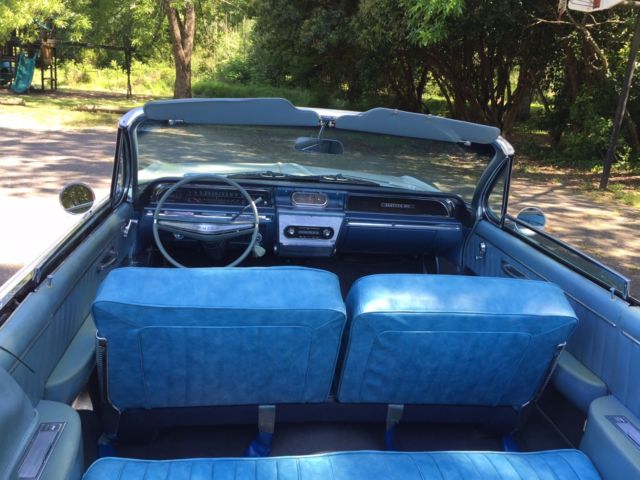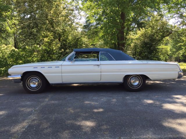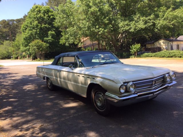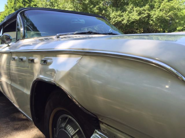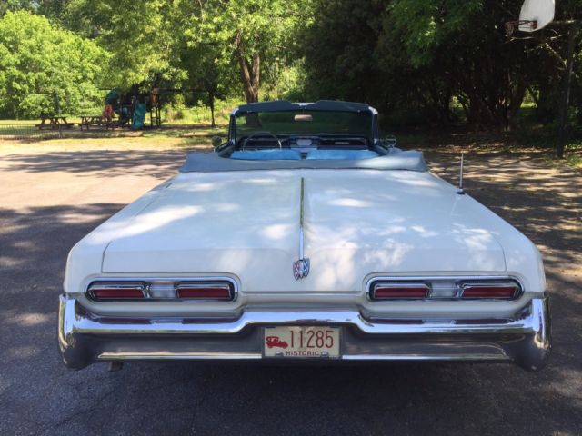 The vehicle was purchased with the intention of restoration but a new child on the way has altered my plans and the vehicle is being sold as is. It is in running condition having been recently tuned up by a Buick Mechanic who worked on these vehicles when new. The radiator has been flushed, transmission fluid changed, new hoses and battery. All power windows work, the top works, gauges all work. The radio is not currently working. The engine is the 445 Wildcat with Automatic transmission. The top and interior are in very good condition. The blue matching carpet is also in good condition. The vehicle shows well as a 'driver' condition vehicle. There are normal wear items around the body for an unrestored vehicle of this age. There is damage on the right front quarter panel as a result of a parking lot impact (in 2008). I had one professional restoration shop inspect the vehicle and they indicated the panel is repairable. The damage is visible in several of the passenger side photos (front-end). I held off on any repair in the event someone wants to complete a total restoration. The vehicle has a clear title and is located in Atlanta, GA. Upon successful sale, pick-up/transportation will be the responsibility of the new owner within 2 weeks. Please have a plan in place to pick up the vehicle prior to bidding. I am happy to answer any question that comes up from a potential buyer. A very fair reserve has been assigned - this car will make an awesome summer ride for someone looking for a big American cruiser!