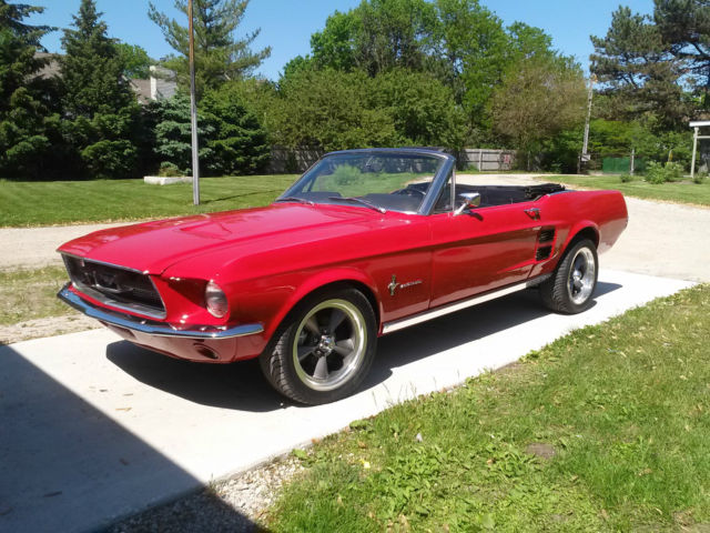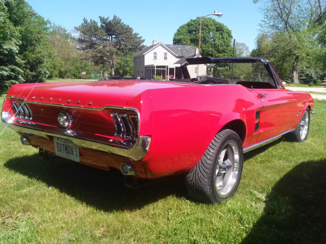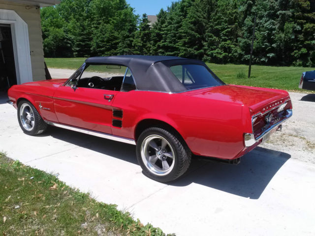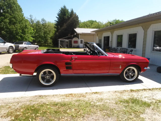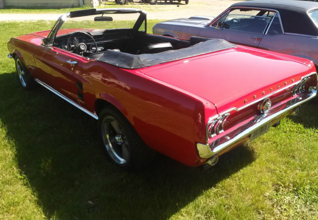 1967 MUSTANG CONVERTIBLE 351w V8 - Automatic transmission Runs and Drives great! Powerful and Reliable! Rebuilt engine - bored .030 over, crank balanced, ported and polished heads, Roller rocker arms, mild cam, MSD+Mallory ignition, full length headers with dual exhaust, electric fan, 4 core radiator, electric fuel pump with remote filter, etc. Rebuilt Transmission - FMX rebuilt auto trans with 1800 stall, ratchet shifter, trans cooler and filter. Rear end - 9" rear end with new bearings, seals, 4:11 posi, all new hardware. Interior - clean with brand new power top Wheels - New less than 25 miles 17x7 front wheel and tires with 17x8 rear wheel and tire. Correct wheels, NO spacers or adapters here! Solid daily driver condition car, beautiful red color. Lots of new chrome, many many new parts. Over $10,000 in receipts and a stack of paperwork for the car. Front disc brakes with all new hardware front and back. Power steering. No issues, doesnt leak a drop. Jump in, fires right up, put the top down and cruise! Youtube videos (copy and paste if link doesnt work) http://youtu.be/FaY3AplncG0 http://youtu.be/FwvPhmqzi-0 I reserve the right to end auction early due to selling locally as well. Sold AS-IS, Clean and clear title in hand. I am available to show the car or help load if you send a transporter. Any questions feel free to ask! $500 deposit due within 24 hours and payment in full within 3 days. Cashiers check, wire transfer or cash. All funds must clear my bank before car can leave.