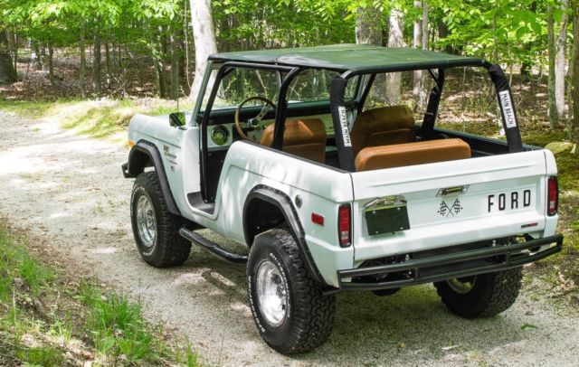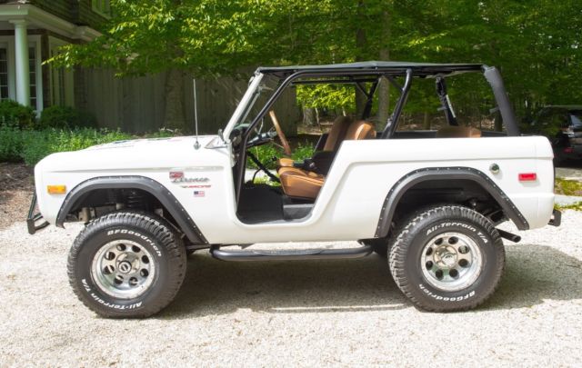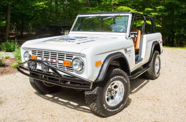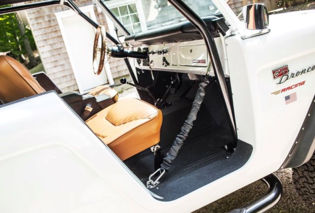New Front Disc brakes. New Black Carpets front. New twin Thrush pack exhaust mufflers. Warn Hubs...Yes!New Seats front and rearNew Dash board top and white facia painted to match.New Suspension , shocks and springs.steering components and rubber dust boots.New step up Nerf Bars.All New nuts and bolts alloy through out entire car..no rusty nuts anywhere.New Chrome outside Mirrors and new center interior mirror and new chrome headlight surrounds.Conversion kit..removes doors and frenches in sleek portal section, cuts fender wells and installs Flaired mud protector.New front and rear bumpersNew KC off road spotlights in front bumper.New Battery. New Steering wheel wood.New Hella H4 conversion headlightsFresh Paint in Land Rover Fiji White.New Front Hood sheetmetal with new hydraulic struts and latch mechanism.New Family style Roll cage with Safari top and roll bar pads..Original 302 rebuilt as stock with new Headers and dual thrush pack mufflers.New Holley 4 barrel. ferocious sound. Edelbrock riser manifold with Holley 680.16 inch American eagle aluminum Mags. B F Goodrich tiresEntire undercarriage detailed as new with rust proof coating.New GPS retro look Speedo with all gauges intact and working.New Alpine stereo with bluetooth.New Wiring and Fuse box in glove compart.New Tail lenses and tail lens matte black surrounds..New fixtures on all side and front markers.No Scratches no dents on body...no dirt at all on undercarriage or in wheel well surrounds.All Systems are working and in fine order..Not a trace of Rust or Bondo on entire car.A true Gem , All Vinyl Decals are removable.You May find a Bronco cheaper, but not a roadster in this as new condition.Pictures do not lie..truly outstanding cond.Available immediately..$66,000.00 PLEASE EMAIL ME WITH ANY QUESTIONS MSDESIGNLTD@AOL.COM