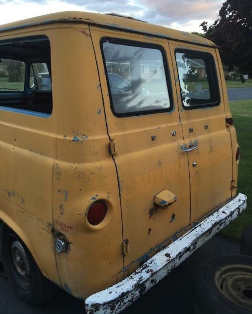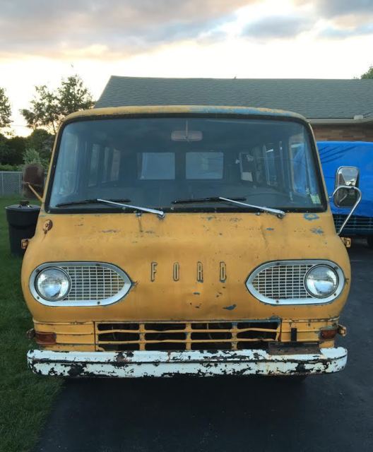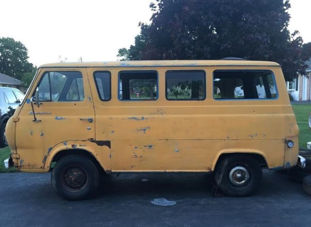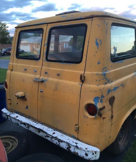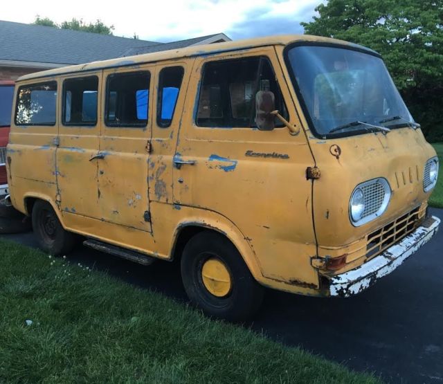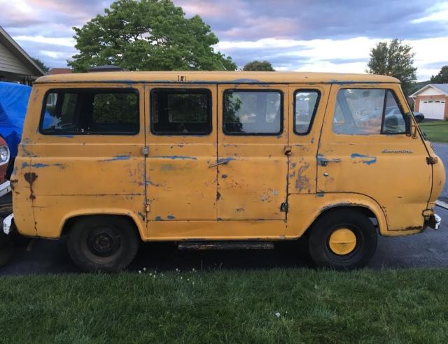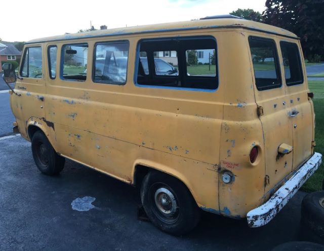 Here is a 1965 Ford Econoline window van. Picked up this van a while back however some circumstances have changed and its a project I will not be able to complete. Sold new out of the New York sales district this van was originally Ford factory "Marlin Blue", however at some point was paint yellow for use as a school bus. The van is 50+ years old and has rust, rot, dents and dings. Van is also missing two side windows. The previous owner pulled the original 170ci engine however never complete the rebuild. It is in pieces in the back of the van. It appears to be all there but I am not a professional mechanic and cannot be sure. The van was last running, driving and NY state inspected in 2007 before the engine was pulled. The C4 automatic transmission is still mount under the van. The odometer reads 66,329 however its unknown if it has rolled or not. There is a pull out step pictured however it was removed and not included in the sale. The van is located in Emmaus, PA 18049. Emmaus is about an hour north of Philadelphia and an hour south of New York City. It is minutes from the New Jersey state line as well as I-78, Route 22 & 309. If shipping the van, pickup would be convenient for the carrier. We have a very reliable and reasonably priced carrier who hauls for us regularly. If you need assistance making arrangements let us know and we will assist in any way possible. I purchased the van from a shop in New York who took the van as collateral for non-payment of services. Included in the sale will be all paperwork I received including New York Department of Motor Vehicles "garageman's affirmation and bill of sale", as well of bill of sale from me if one is required. Actual title was never applied for here in Pennsylvania as I have had no reason to register the van. Check with your state on title and registration requirements. The van is being sold as-is with no warranty or guarantees. Buyer must pay by cash or certified funds in full within 7 days of auction end. NO PayPal, personal checks etc! $0.99 starting bid! Low reserve price! Buy it now $3695, or best offer! Offers or questions feel free to contact us!
