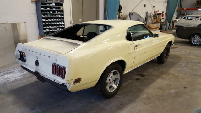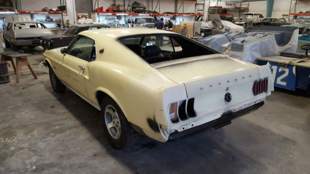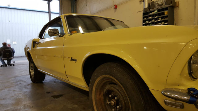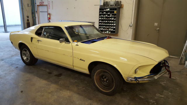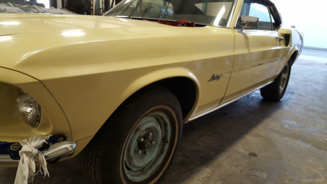 I have a nice solid '69 Ford Mustang fastback project car for sale. This SURVIVOR is a VIRTUALLY RUST FREE CALIFORNIA CAR. Restoration work has begun however, work has stalled, situation has changed so I am selling it. It has been stored indoors, never outside. This car is still in ORIGINAL PAINT. It has never been repainted, it is very straight, nearly rust free and there is no evidence of collision damage. It is an excellent candidate for restoration or pro-street build. Originally this was a 302 C4 automatic car, yellow with a black bucket seat interior. Obviously it is still in original yellow paint, the black buckets and carpet are still there in very good condition. The dash is in remarkable condition; it still looks new. I replaced the original 302 with a newly rebuilt 351 Windsor that has zero hours on it. The 351 was rebuilt mostly to original specs with the addition of an upgraded cam, intake carb and headers. It has been hooked up to the original C4 automatic and stock floor shifter. The engine and engine compartment have been paint a House of Colors blue. The glass, gauges, dash, bumpers, driveline, exterior trim, are all complete and good. It has a new headliner installed. Also there is a new Edlebrock carburetor in the box. The sheet metal is all in very good condition and straight. The headers are new, and it comes with a new dual exhaust. The car is complete minus the rear seats, rear bumper and door panels. There may be a few small pieces missing too but nothing significant. The tires and wheels should be considered rollers only. From the pictures you can see I have put all the parts that go with the car inside. It is ready to go. I have misplaced the title however, I have a valid Washington state Affidavit in Lieu of Title in hand. The car is still in the WSDL databank so there should be no problem titling it in the buyers name. Call Pete at 360 631 3171 for an appointment to see it. I am located in Arlington WA 98223. Thanks!